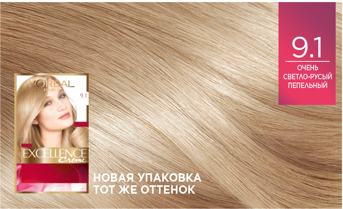 L'Oreal Paris Крем-краска для волос cтойкая «Excellence», оттенок 9.1 Очень светло-русый пепельный