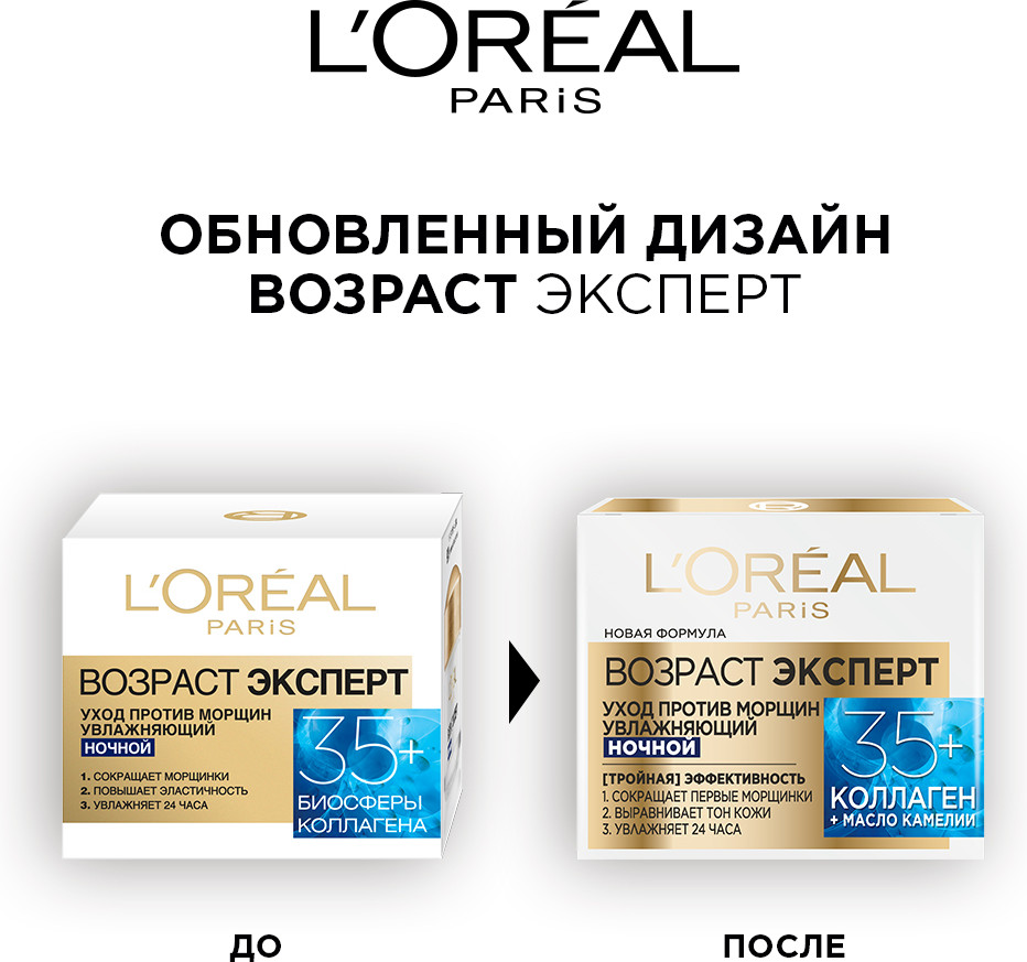 L'Oreal Paris Ночной крем для лица «Возраст эксперт 35+» увлажняющий против морщинВ данный момент этот товар отсутствует в продаже. Возможно, у нас найдется аналогичный или похожий товар здесь. Серия: Возраст Эксперт Увлажняющий уход против морщин «Возраст эксперт 35+» создан специально для борьбы с первыми морщинками, повышения эластичности и интенсивного увлажнения 24 часа. Молекулы коллагена проникают в эпидермис, где увеличиваются в объеме до 9 раз и словно выталкивают морщинки изнутри, сохраняя упругость кожи. Масло камелии способствует интенсивному питанию и мягкости кожи. |