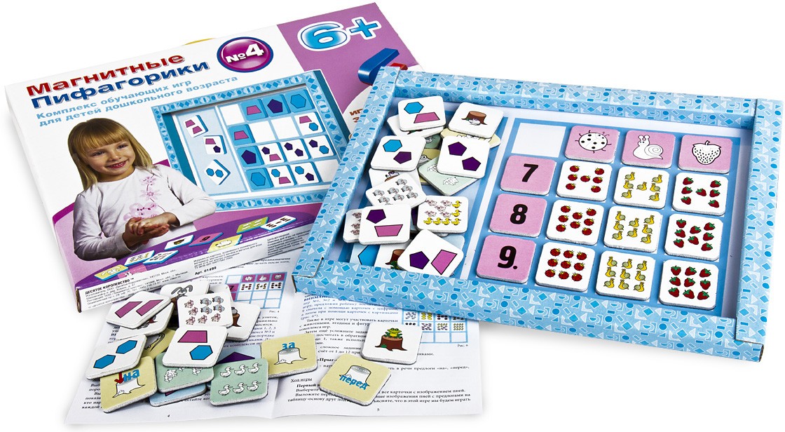 💳 Оплатить за товар можно при получении 🇰🇿 Есть бесплатная доставка по Казахстану 🎁 Копите бонусы с каждой покупки «Магнитные пифагорики 6+» — четвертая ступень уникальной развивающей игры «Пифагорики», предназначена для дошкольников старшего возраста. Детям предлагается изучить последние три цифры, освоить навыки обратного и прямого счета до 9 (здесь вам понадобятся предыдущие два комплекта карточек) и математические действия с числами до 12. Игра познакомит малышей со сложными геометрическими фигурами — трапецией, пятиугольником, шестиугольником и еще тремя цветами. |