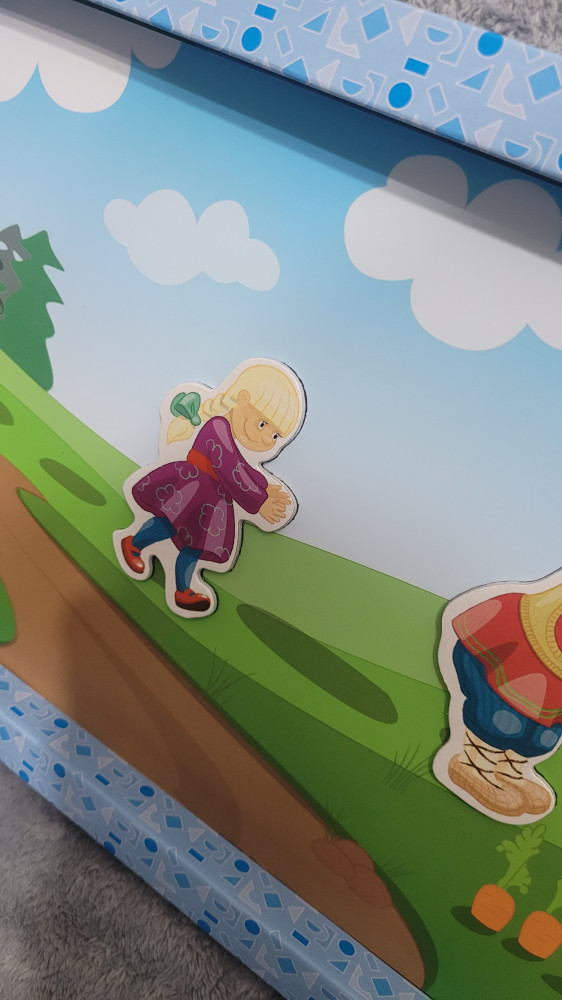 Просто супер вещь. Берите не пожалеете и хорошо упаковано. Замечательно и себе и на подарок. 4 сказки, можно играть и на метал доске, которая в комплекте и на большой напольной, и на холодильнике. А в обучающие центры вообще находка.