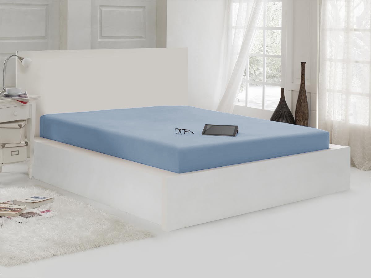 Отзывы «Простыня трикотажная на резинке (2-спальная, хлопок, 140x200+30 см), цвет голубой»