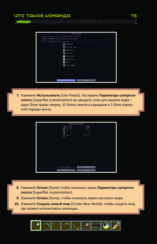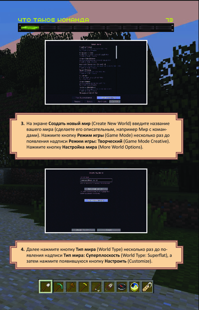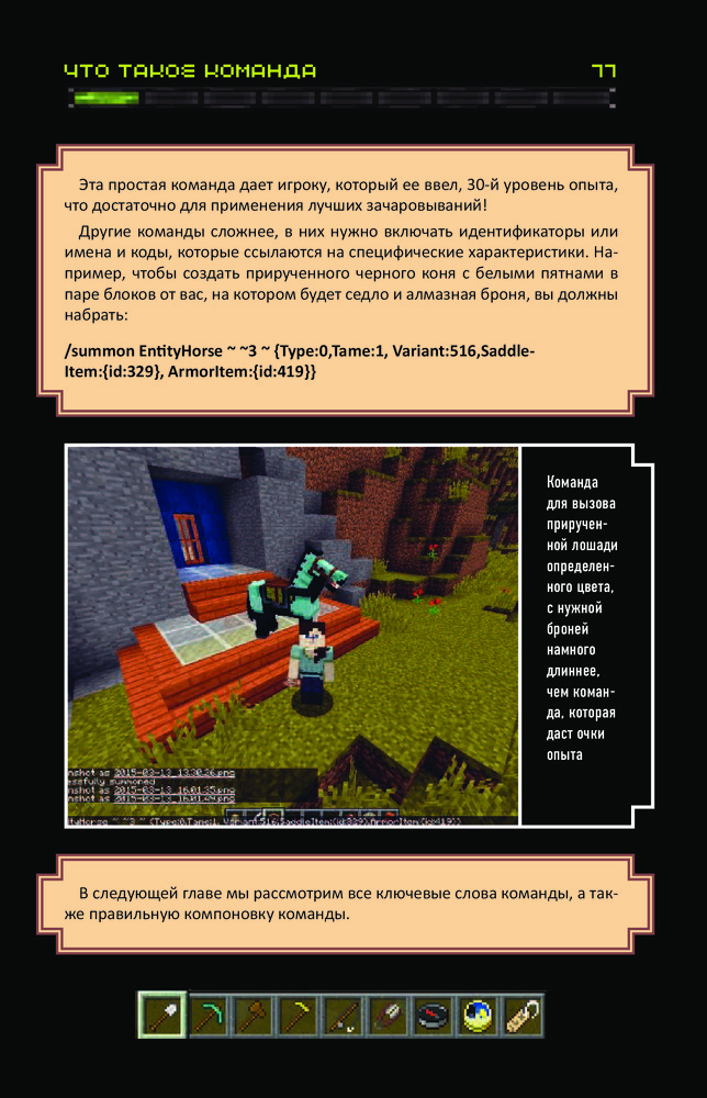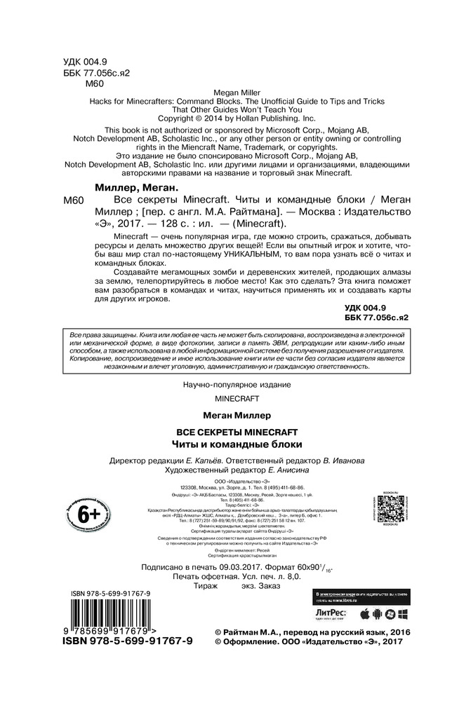 Все секреты Minecraft. Читы и командные блокиВ данный момент этот товар отсутствует в продаже. Возможно, у нас найдется аналогичный или похожий товар здесь. Серия: Minecraft Minecraft — очень популярная игра, где можно строить, сражаться, добывать ресурсы и делать множество других вещей! Если вы опытный игрок и хотите, чтобы ваш мир стал по-настоящему УНИКАЛЬНЫМ, то вам пора узнать всё о читах и командных блоках. |