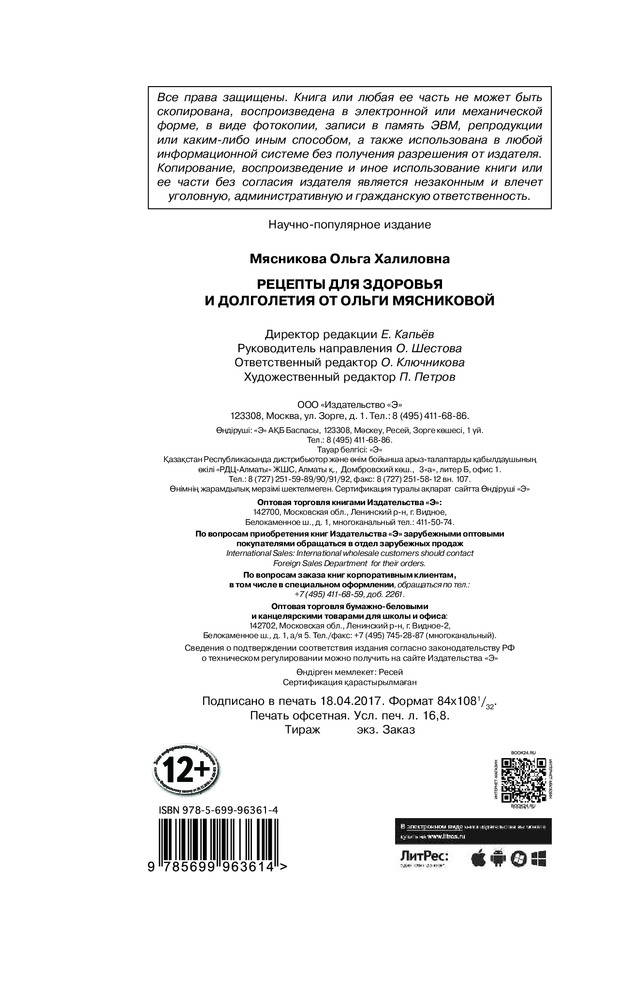 Полезные и нужные советы, касающиеся еды! Покупала в подарок маме, ей очень понравилась книга! Вторая книга Мясниковой, купленная здесь!