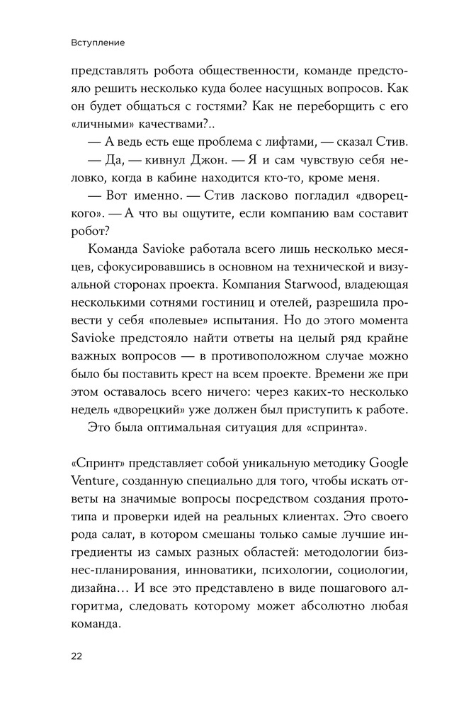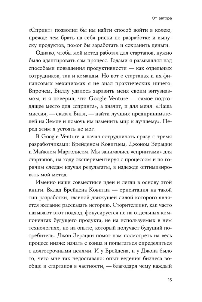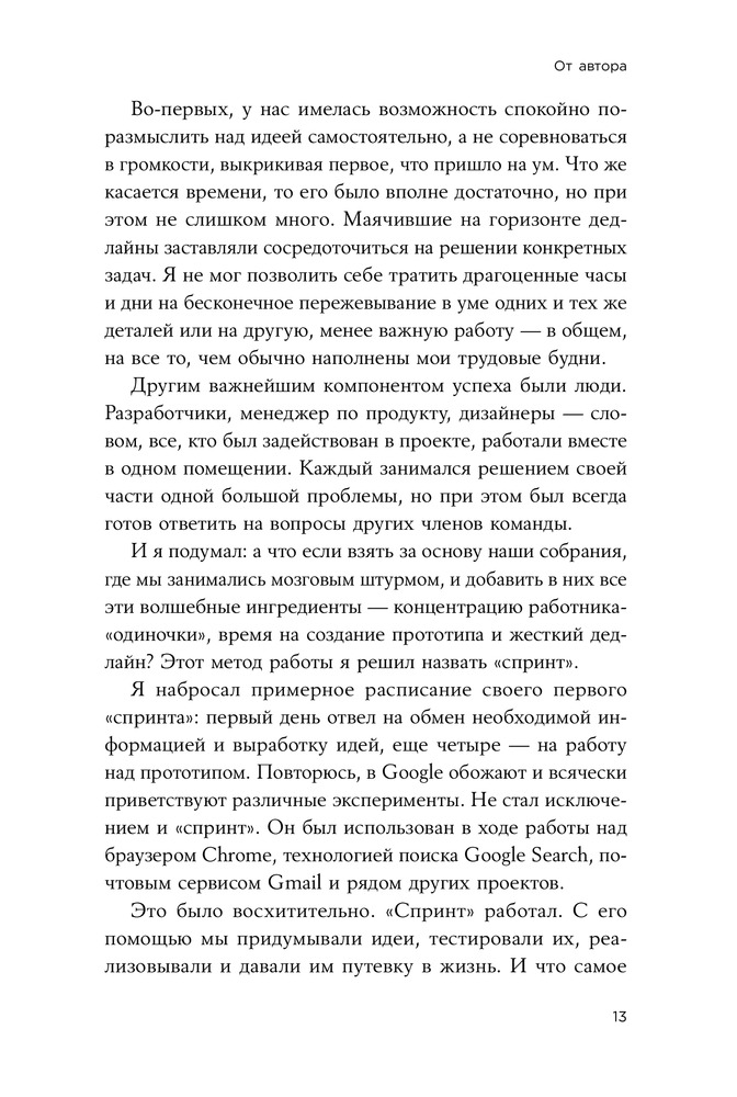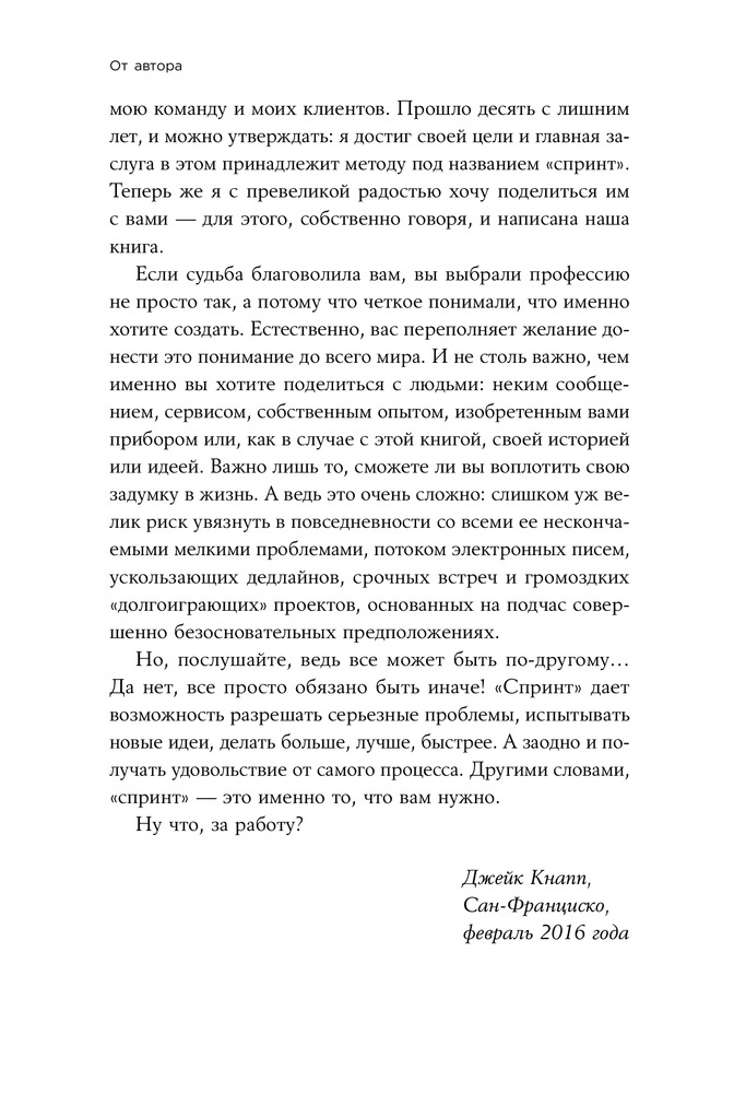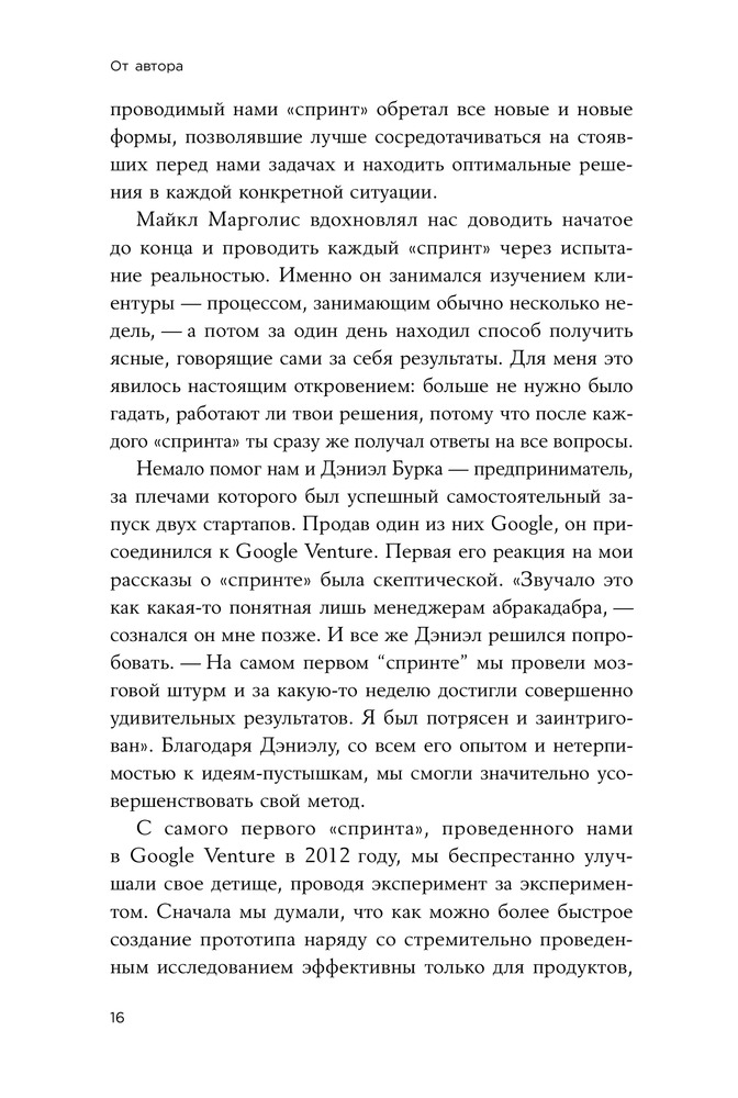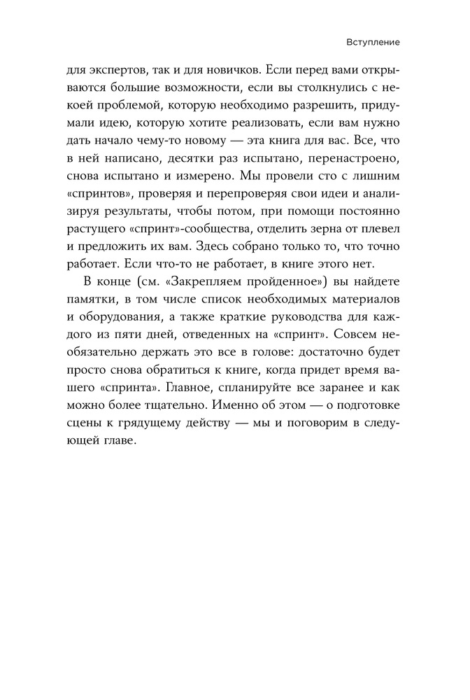 Спринт: Как разработать и протестировать новый продукт всего за пять днейДжон Зерацки, Брейден Ковитц, Джейк Кнапп В данный момент этот товар отсутствует в продаже. Возможно, у нас найдется аналогичный или похожий товар здесь. Серия: Руководителю «Спринт» работал. С его помощью мы придумывали идеи, тестировали их, реализовывали и давали им путевку в жизнь. И что самое важное — они выживали в реальных условиях, успешно демонстрируя свою состоятельность. Постепенно «спринтом» заразился весь Google: этот метод взяло на вооружение множество команд, он проник во множество кабинетов. |