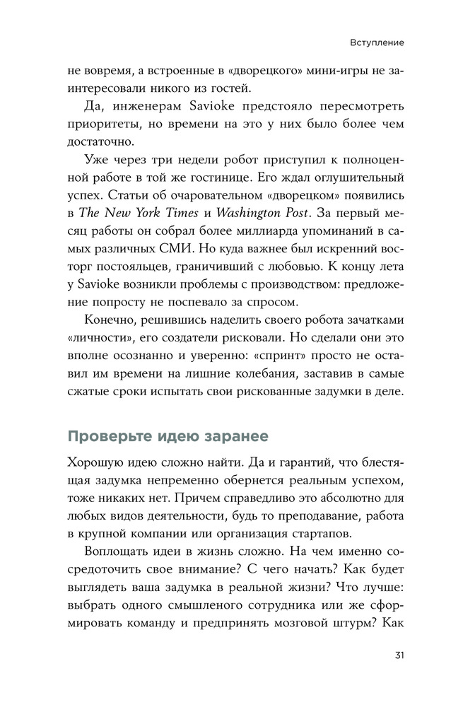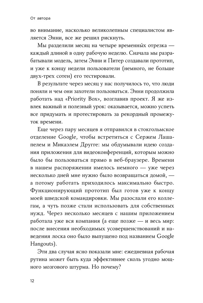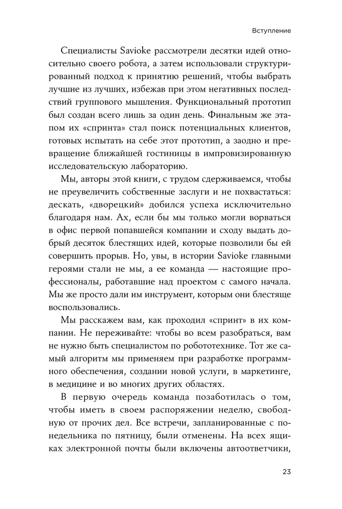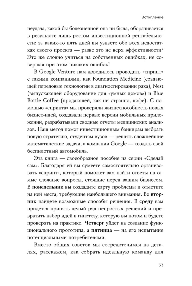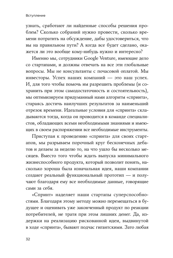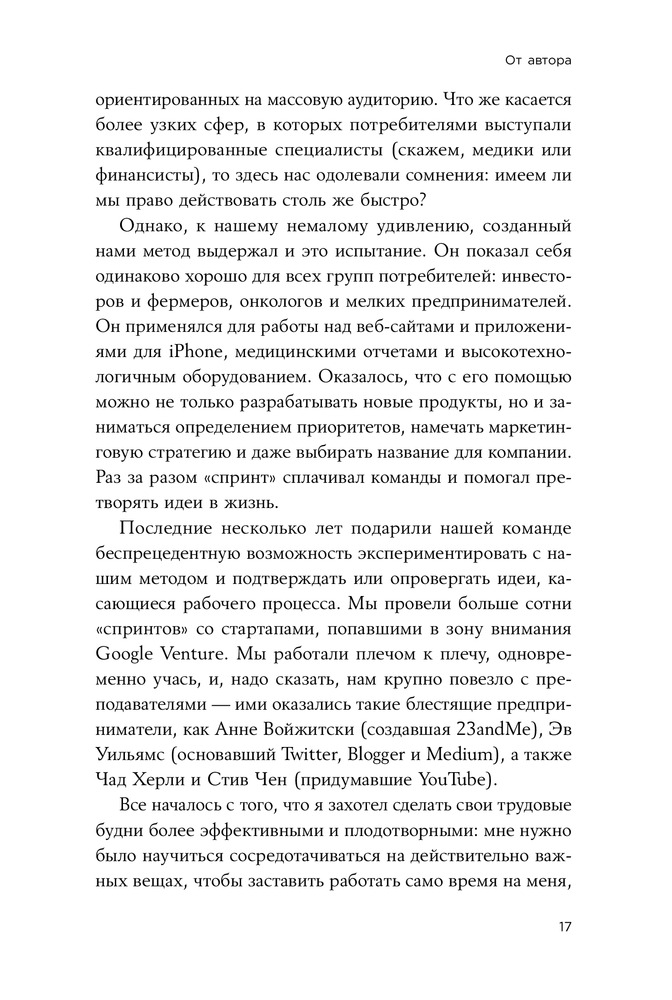 Спринт: Как разработать и протестировать новый продукт всего за пять днейДжон Зерацки, Брейден Ковитц, Джейк Кнапп В данный момент этот товар отсутствует в продаже. Возможно, у нас найдется аналогичный или похожий товар здесь. Серия: Руководителю «Спринт» работал. С его помощью мы придумывали идеи, тестировали их, реализовывали и давали им путевку в жизнь. И что самое важное — они выживали в реальных условиях, успешно демонстрируя свою состоятельность. Постепенно «спринтом» заразился весь Google: этот метод взяло на вооружение множество команд, он проник во множество кабинетов. |