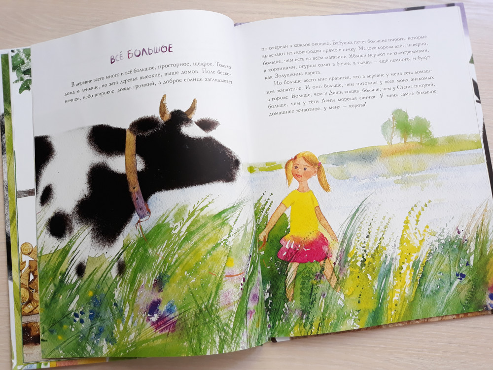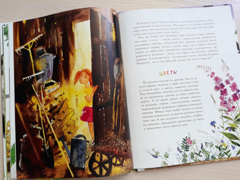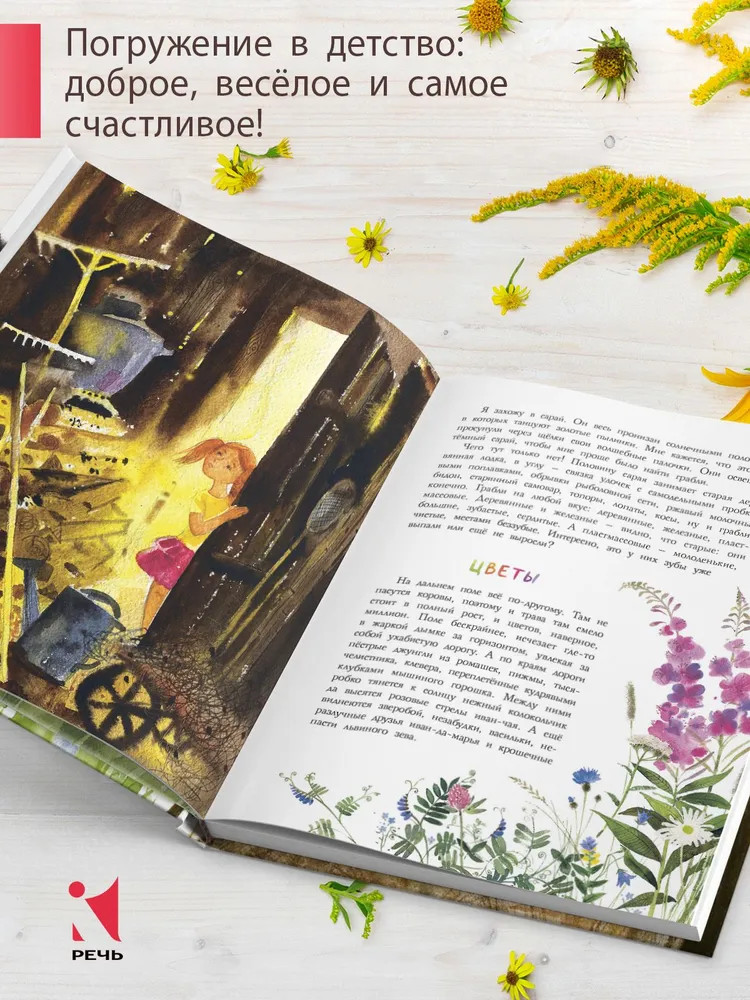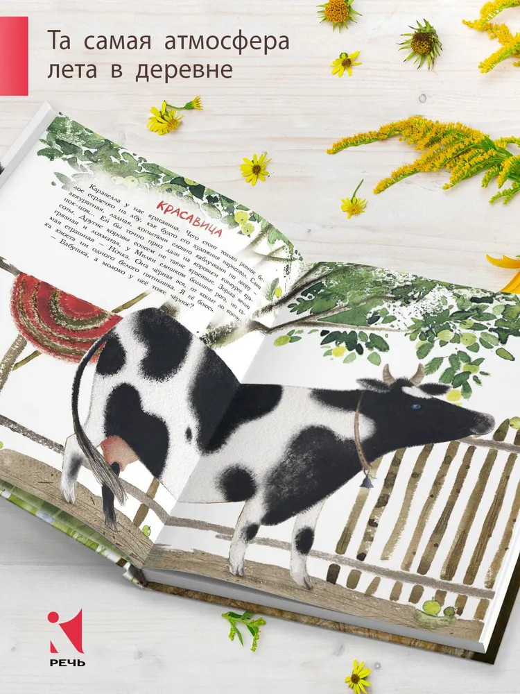 Удивительно, что у такой теплой, согретой солнцем и летом книги, нет ни одного отзыва... Если вы жили летом в деревне, в самой настоящей деревне, то с первых строк вы погрузитесь в воспоминания и каждое слово будет отзываться в вашем сердце. И вы вспомните детство, когда "поле бесконечное, небо широкое, дождь громкий, а доброе солнце" так пронизывает щели в сарае, что пылинки танцуют. Когда лето - это целая жизнь и хочется, чтобы эта жизнь никогда не заканчивалась. Когда самые вкусные яблоки - те, что сорваны с ветки, кое-как помыты в баке, а то и просто - об рукав и в рот, когда самая вкусная малина - та, что в самой гуще под нижними ветками, от которых потом руки-ноги в царапинах. Когда счастье - это дни на пролет гонять на велосипеде, купаться и загорать, а по вечерам бежать за коровами, встречать их из стада и ждать, когда же дадут парного молока. Вот об этом эта летняя книга, она как будто привет из прошлого от нас маленьких. Когда ты еще только открываешь для себя этот удивительный мир и все дороги открыты перед тобой и еще столько интересного впереди. Книга небольшая по объему, история написана очень простым языком. Страницы - меловка, обложка "матовая". Полиграфия, как всегда у "Речи", на высоте!