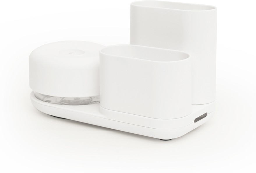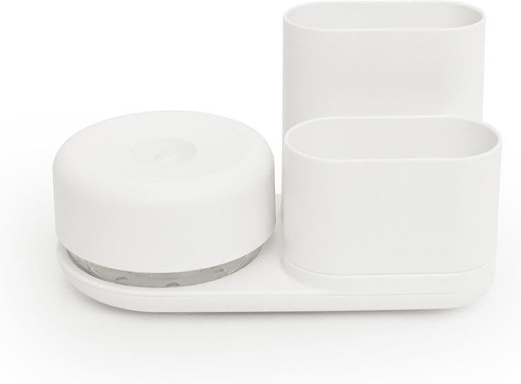Благодаря инновационному насосу диспенсером можно управлять одной рукой. Дозатор способствует экономному расходу средств. Скрытый лоток отлично улавливает лишнюю воду и легко опорожняется через сливное отверстие, расположенное сбоку. Силиконовые ножки не скользят по поверхности. Съемные детали легко очищаются от загрязнений.