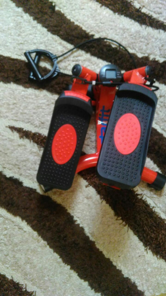 хороший тренажер. но сильно скрипел сразу как только купила, смазали смазкой и все норм. еще одна мелочь в комплекте, не было батарейки для счетчика шагов, хотя должна была быть, а так тренажер классный! очень нравится, занимаюсь каждый день по 5 мин 3 подхода, дольше ходить пока тяжело, но если постоянно заниматься я думаю смогу больше ! ручки резинки регулируются сверху можно настроить под себя.