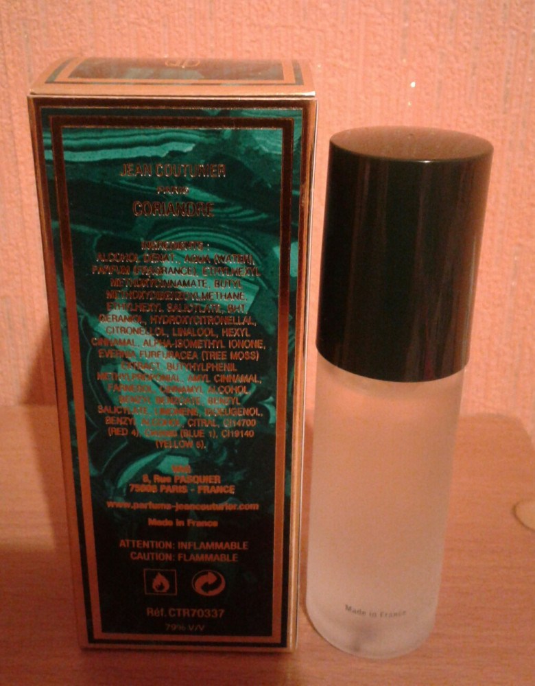 Имею духи "Кориандр" в винтажной миниатюре, 2 мл, поэтому уверенно скажу : ничего общего этот современный новодел не имеет с первоначальным Кориандром! Абсолютно разное звучание. Винтаж - горьковатый, мшистый, лесной аромат, абсолютно не сладкий и убойной стойкости. Новодел - довольно приятный, сладковатый, слегка цветочный, есть розочка в базе. Мне он нравится намного больше оригинала! Тот слишком резкий, мужской какой-то, носить его неприятно, а новодел проще, милее, хоть и стойкости практически нет. Возможно, постоит полгода и она появится. Недостаток у новодела ещё тот, что он замыливается на коже (у меня горячая). Холоднокожим дамам, думаю, лучше подойдёт. Но те, кто думает, что приобретет версию, схожую с "тем самым " Кориандром - не обольщайтесь. Ничего общего. Мне есть с чем сравнить. Они совсем разные. И в верхах, и в середине, и в базе. С блотера винтаж, кстати, звучит так же ярко, и пару дней спустя. А новенький уже через полчаса слетел без следа. Увы. .