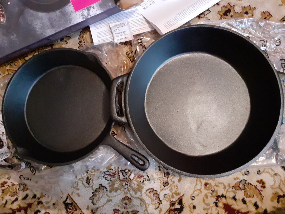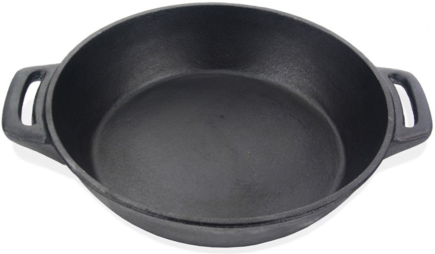 Отличная, большая сковорода! При первичной подготовке (прокаливание) практически не было чада, как это бывает с чугунными сковородками! Видимо, чугун не обработан машинным маслом, как у российских производителей.
