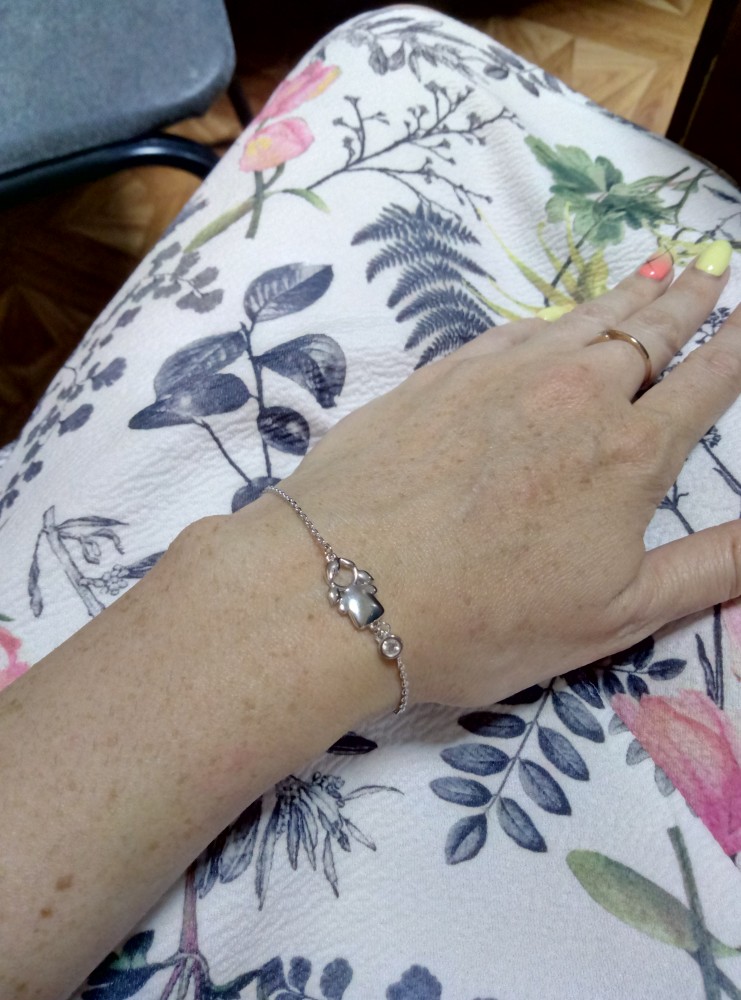 Очень нежный браслетик с фианитом. Хорошо смотрится на руке. Заказывала размер 16-17, можно регулировать застежку либо на 16, либо на 17 сантиметров. К тому же получилось дешевле, чем в официальных отделах Sokolov. Спасибо Flip за быструю доставку и вежливое обслуживание.