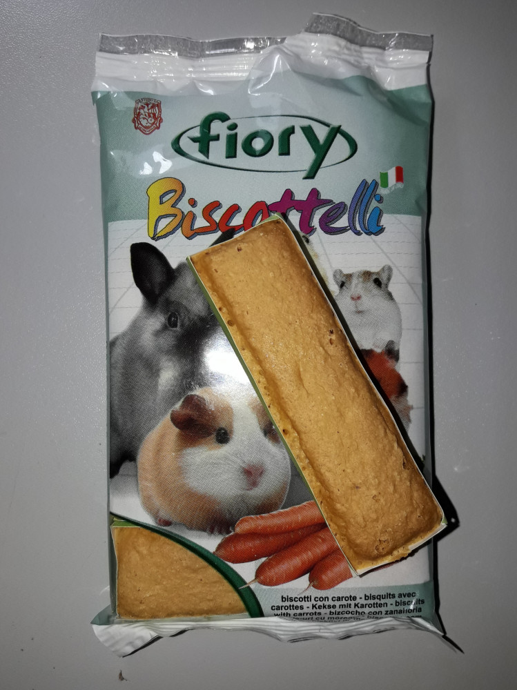 Fiory Бисквиты для грызунов с морковью (30 г)-30% +8 сладкий аромат твердая текстура низкая поедаемость бумажка прилипает