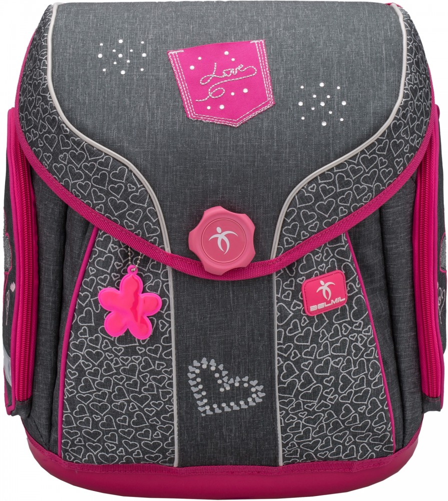 Belmil Школьный ранец «Jeans Love»В данный момент этот товар отсутствует в продаже. Возможно, у нас найдется аналогичный или похожий товар здесь. Серия: Missy & Mister Легкий и прочный рюкзак весит всего 900 г и сделан из высококачественных прочный и водонепроницаемых материалов. Долговечный рюкзак укреплен со всех сторон и имеет сильную нижнюю часть, что приводит к повышенной стабильности и долговечности. В нижней части имеются некоторые дополнительные функции, которые позволяют рюкзаку удерживать вертикальное положение и не заваливаться, что защищает его от попадания грязи. Эта модель имеет новую, немецкую фиксирующую систему Fidlock. Благодаря сильным магнитам, он может быть открыт с помощью простого пол-оборота, и он автоматически закрывается. Идеальное сочетание функциональности, безопасности и игривости! Дополнительный съемный грудной ремень легко крепится к рюкзаку для стабилизации нагрузки. Если не хотите пользоваться ремнем, он может быть отстегнут в любое время. Эргономичная форма и дышащая задняя обивка минимизирует давление на спину. Плечевые стропы также имеют мягкие подушки и регулируются, что обеспечивает ежедневный комфорт. Рекомендуется врачами и специалистами! Крышка имеет две отдельные ручки, каждая из которых предназначена для различных целей: резиновая ручка служит безопасной и удобной рукоятки в детских маленьких руках, а другая используется, чтобы повесить сумку в шкафчике или на парте. Рюкзак оснащен умными разделителями, которые помогают детям организовать свои школьные принадлежности. Учебники и тетради всех размеров идеально умещаются и не перемешиваются. Этот рюкзак имеет расширяемый передний карман, который дает дополнительное место для хранения. Бутылка воды может быть легко помещена в боковые карманы (до 0,7 л). С рюкзаком Belmil безопасность гарантирована, даже если становится слишком темно: рюкзак имеет светоотражающие полосы со всех сторон, сильный и простой в использовании металлический замок с отражающими особенностями обеспечивает высокую видимость в ночное время. |