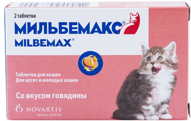 "Мильбемакс таблетки для котят и молодых кошек" в качестве действующих веществ содержат мильбемицина оксим - 4 мг/табл. и празиквантела - 10 мг/табл., а в качестве вспомогательных компонентов: микрокристаллическую целлюлозу - 8 мг, натрия кармелозу - 5,75 мг, повидон - 1 мг, лактозу - 93,75 мг, кремний коллоидный - 1,25 мг, магния стеарат - 1,25 мг, гипромелозу - 2,14 мг, макрогол и тальк - 1,61 мг, пищевую добавку со вкусом говядины (Artificial beef flavour) - 3,75 мг. |