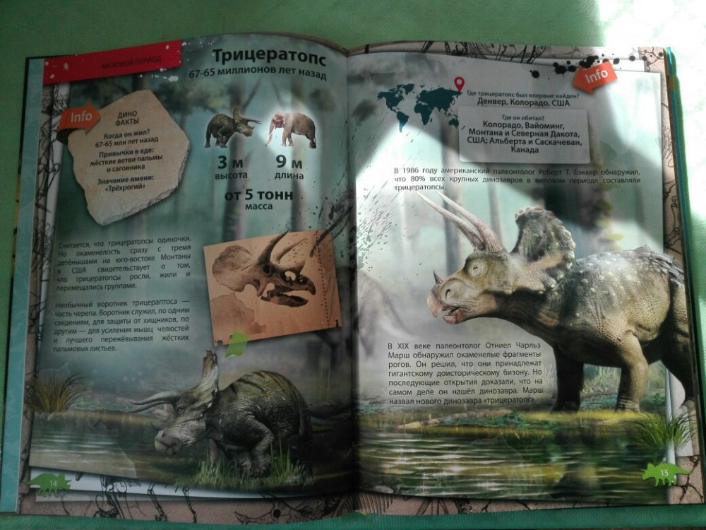 Книга хорошая, можно динозавров смотреть через приложение (доступно и на Android, и на iOS). Только информации маловато для энциклопедии.