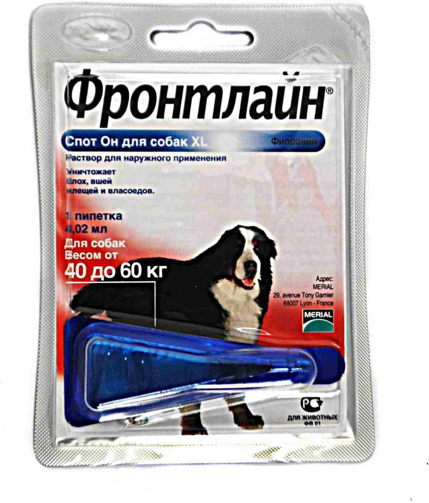 | Merial Фронтлайн Спот-Он для собак 40-60 кг XL (пипетка 4,02 мл)
