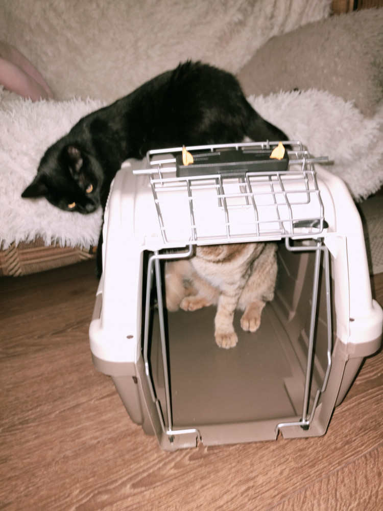 Кот оценил, сидит уже там час. Но для двоих переноска маловата.