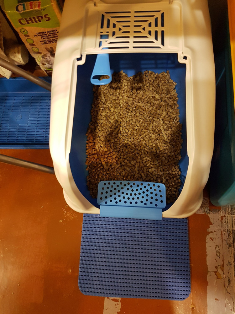 Правда, очень удобно! Сверху я кладу от Глейда гель небольшой, запах убирается и в горшке пахнет цветами. Сначала мы дверцу убрали. Сейчас прицепили. под горшок стелем коврик типо травка с дном, опилки с лап ссыпаются на дно коврика