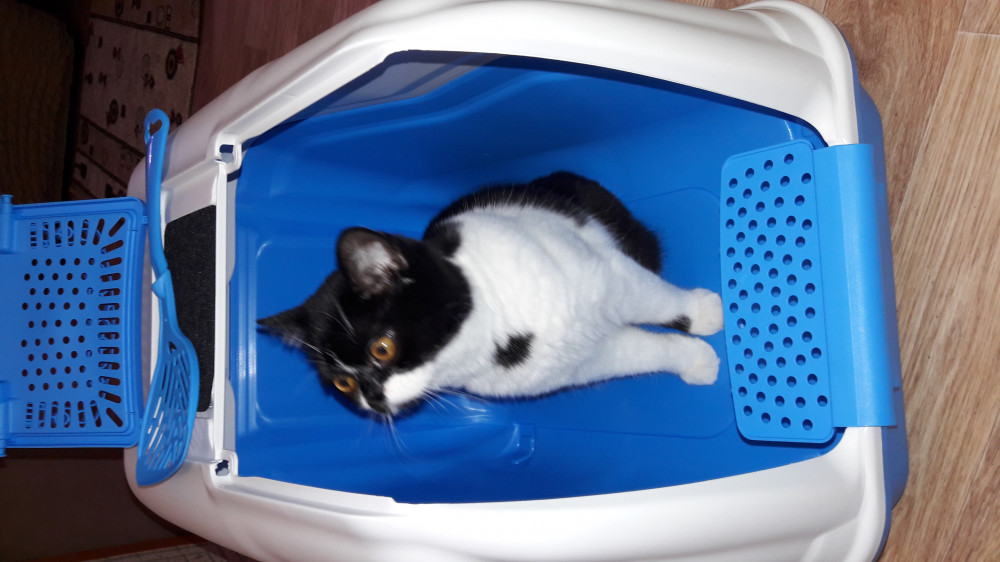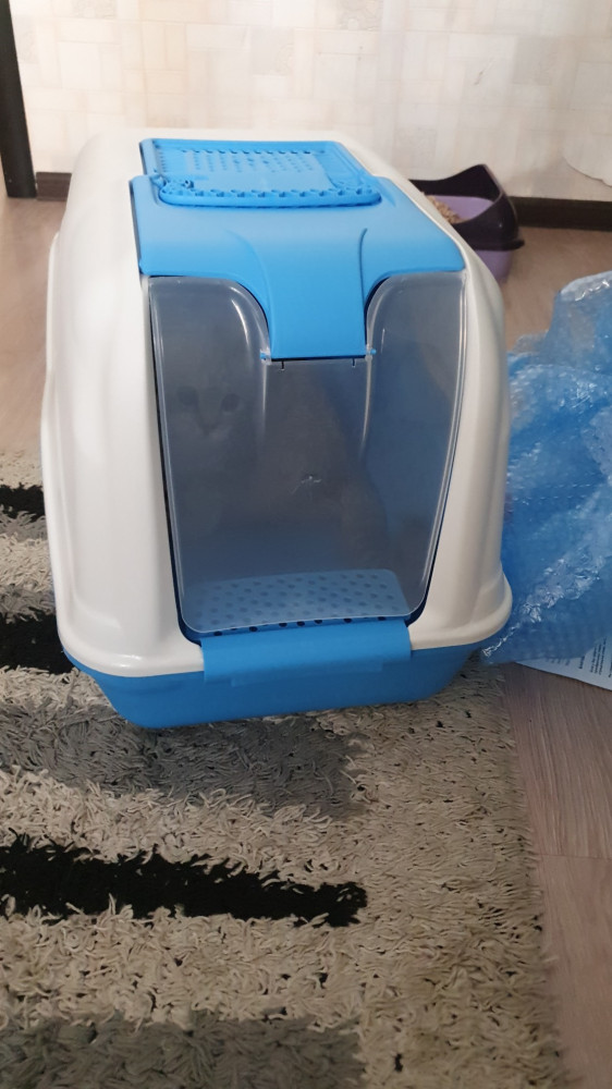 Отличный лоток- домик. Моя шотландка сначала при знакомстве в нем полежала, а через пару часов использовала уже по назначению. Наполнитель теперь в лотке, а не на полу! Только для привыкания пока сняла дверку...Спасибо производителю! Спасибо магазину!