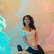 На упаковке написано с года. Нам 2 месяца. Браслет мягкий, по размеру нормальный. Цветок огромный по сравнению с ручкой. Шумит тихо, цвета яркие - это плюс.