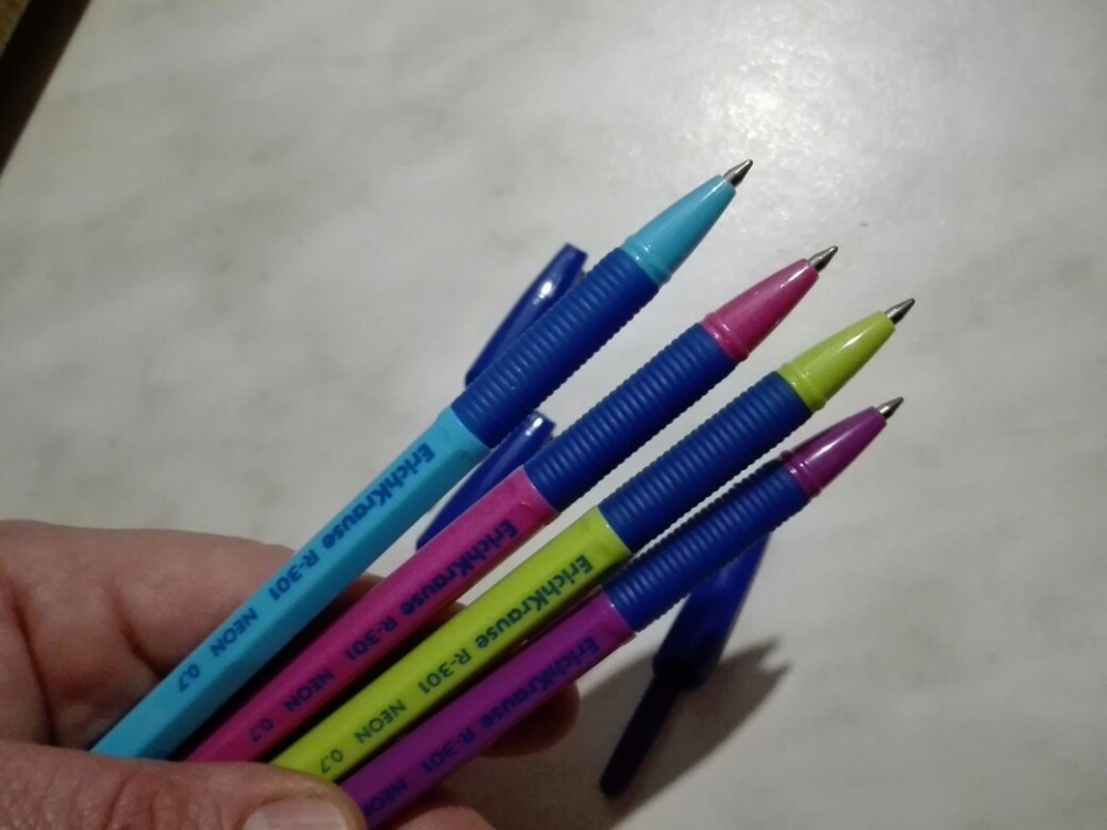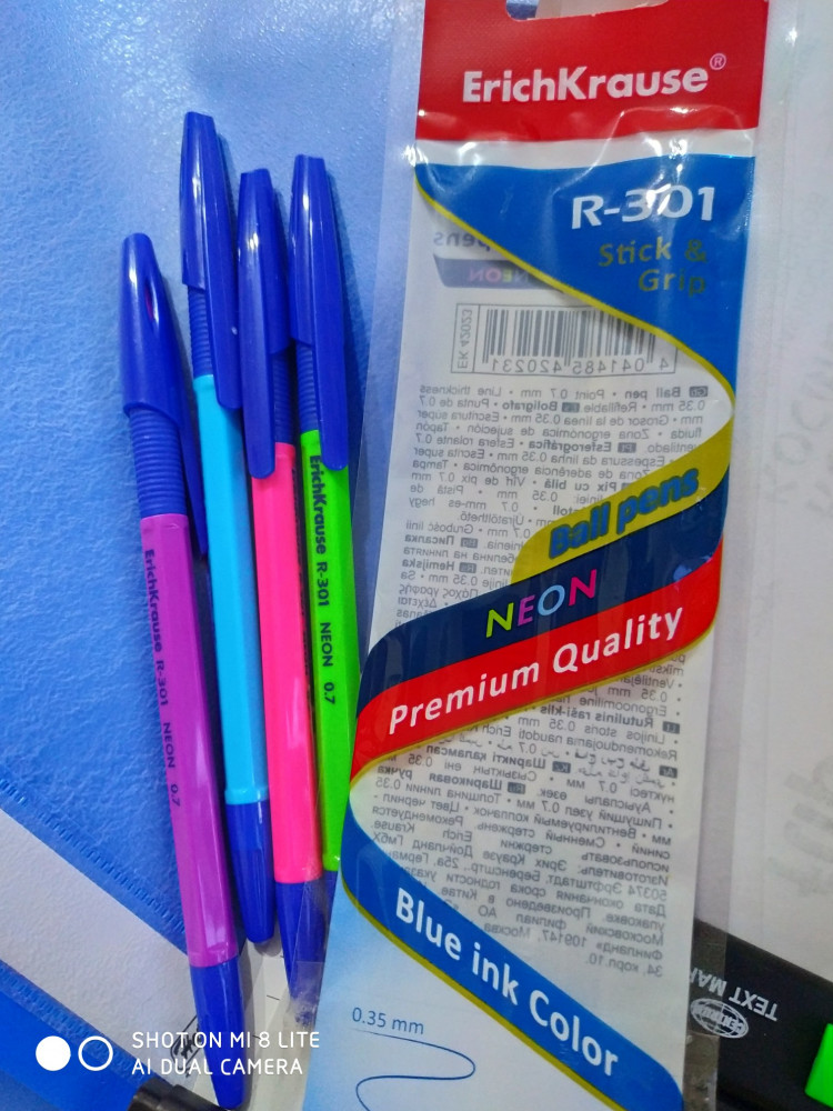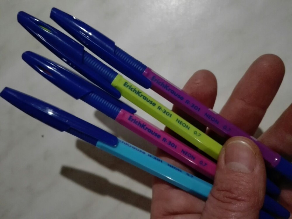 Ручки хорошие. В том году запарились с ручками: то мажут, то иногда не пишут на тетрадях, но скорее из-за качества тетрадей. В этом году и ручка и тетради видать хорошие купили. Заказала еще упаковку таких же и оранжевую упаковку ручек. Теперь только Erich Krause. Только вот заказывать и ждать не удобно, а в магазинах еще не встречала их.
