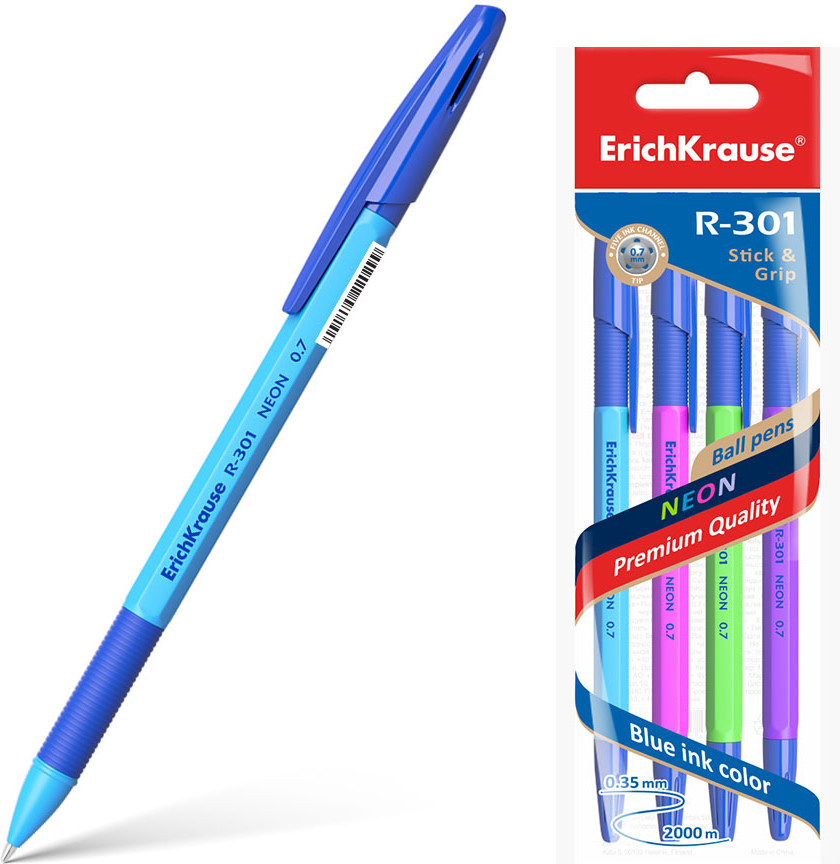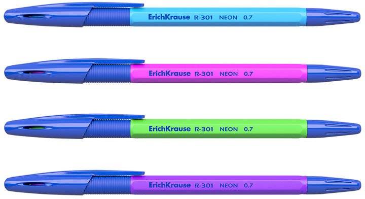 Erich Krause Набор шариковых ручек «NEON», 4 штуки, синие-20% +16 хорошо пишет не мажут тонко пишет яркий корпус удобная ручка