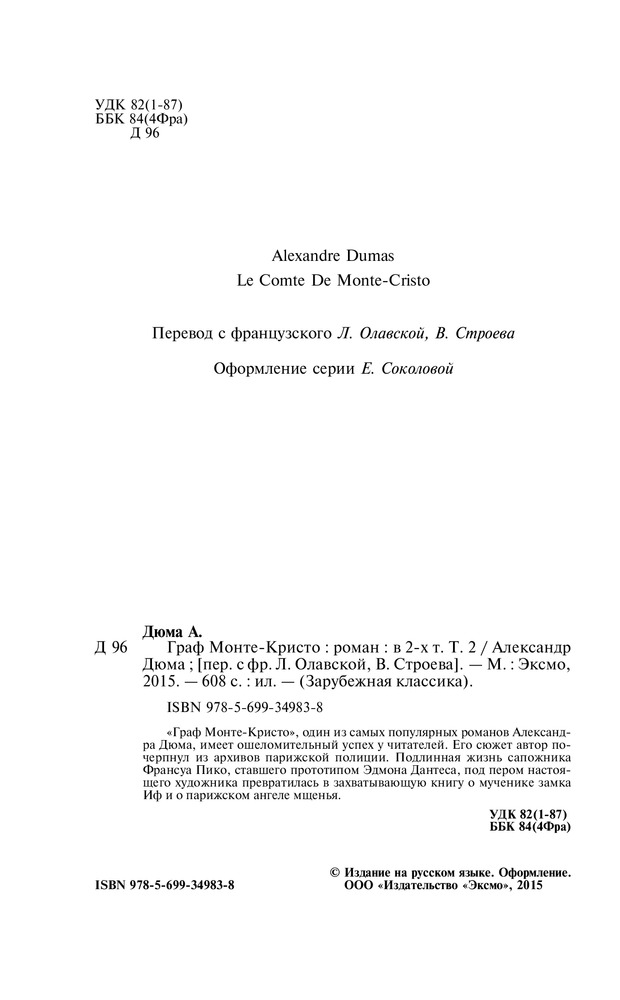 Граф Монте-Кристо. Том 2В данный момент этот товар отсутствует в продаже. Возможно, у нас найдется аналогичный или похожий товар здесь. Серия: Зарубежная классика "Граф Монте-Кристо", один из самых популярных романов Александра Дюма, имеет ошеломительный успех у читателей. Его сюжет автор почерпнул из архивов парижской полиции. Подлинная жизнь сапожника Франсуа Пико, ставшего прототипом Эдмона Дантеса, под пером настоящего художника превратилась в захватывающую книгу о мученике замка Иф и о парижском ангеле мщения. |