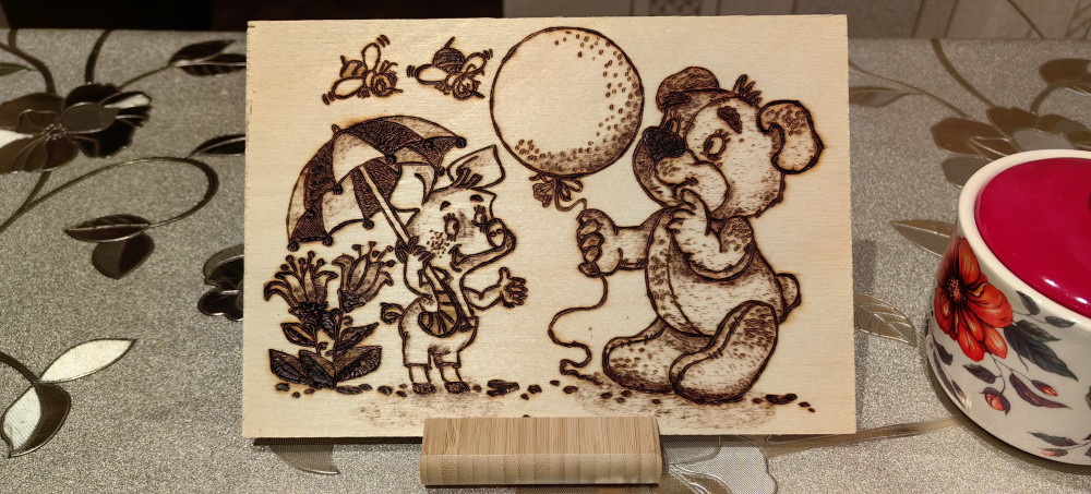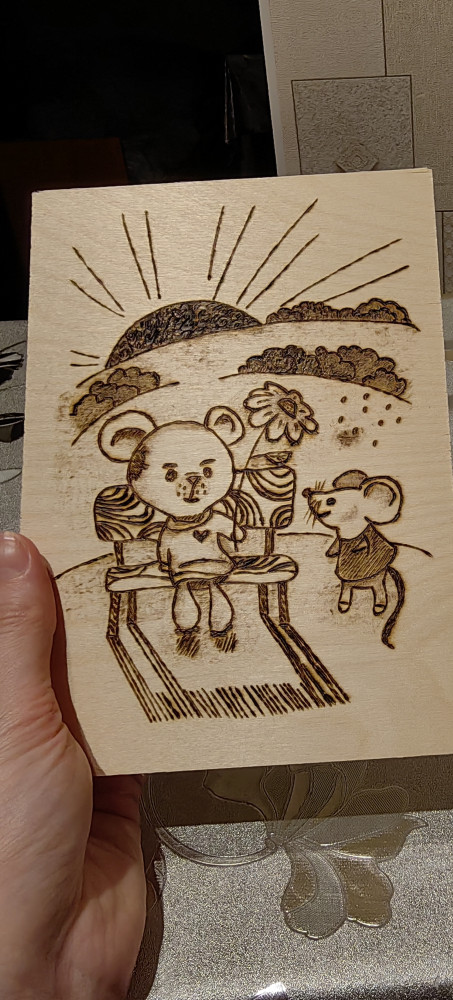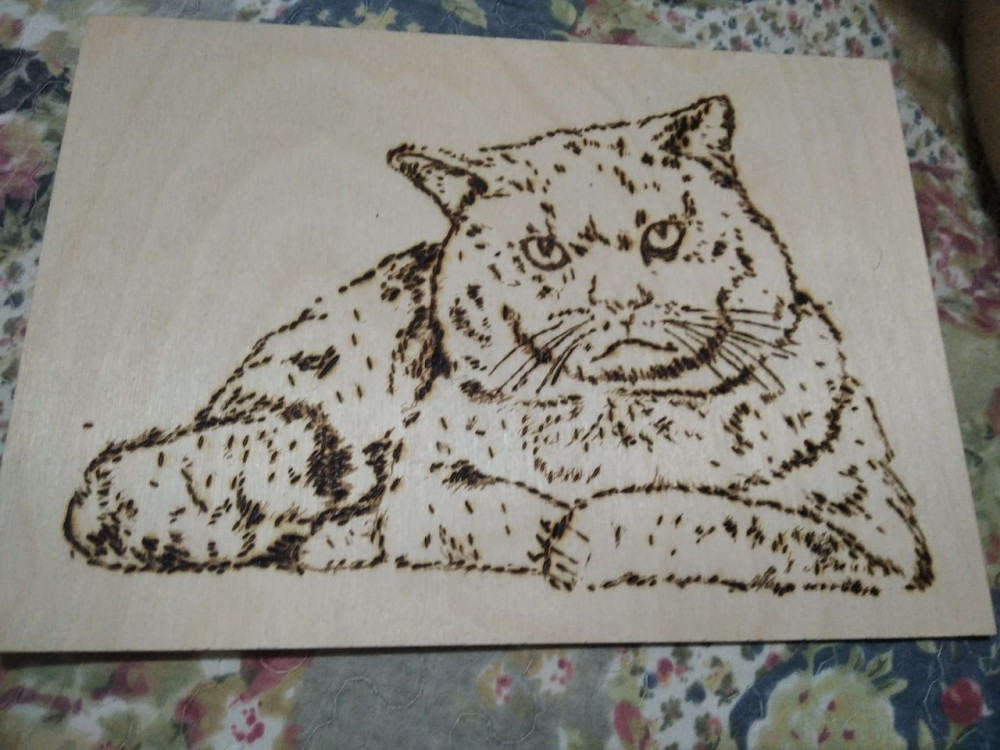 Дополню отзыв фотографиями. Кота выжигала дочь 7 лет. Маяк выжигал муж - 38 годиков.)))