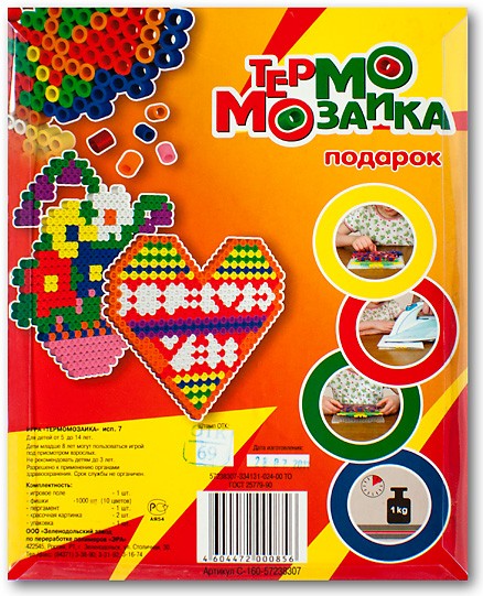 Термомозаика «Подарок»В данный момент этот товар отсутствует в продаже. Возможно, у нас найдется аналогичный или похожий товар здесь. Создать красивую картинку, чтобы подарить или оставить дома, поможет игровой набор «Термомозаика. Подарок». Он представляет собой мозаику из множества небольших фишек, окрашенных в разные цвета. Задача ясна — сложить их так, чтобы получилась законченная картинка. Нужно аккуратно выкладывать фишки так, чтобы цвета сочетались между собой, наперед планировать то, как расположатся элементы. Мозаика задействует мышление и логику ребенка, учит усидчивости и дисциплины. Когда мозаика готова, начинается самое интересное — основа с фишками накрывается бумагой и проглаживается горячим утюгом. Что произойдет дальше? Элементы расплавятся, и сольются вместе — и получится красивая картинка. Такое наверняка понравится детям! Получившуюся вещь ребенок оставит на память, или подарит другу. |
