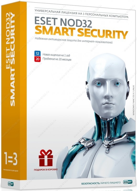 | ESET NOD32 Smart Security + Bonus - лицензия на 1 год на 3ПК