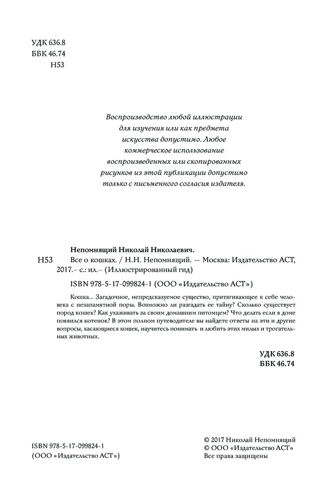 Все о кошках. Иллюстрированный гидВ данный момент этот товар отсутствует в продаже. Возможно, у нас найдется аналогичный или похожий товар здесь. Кошка... Загадочное, непредсказуемое существо, притягивающее к себе человека с незапамятной поры. Кошка и человек познакомились более шести тысяч лет назад и даже после многих сотен лет совместного сосуществования кошка остается неразгаданной тайной — гордым и независимым существом. Эти животные могут легко прожить без человеческого общества, чего не скажешь о самом человеке — в наш век стрессов и невообразимых нагрузок обойтись без этих обаятельных зверьков достаточно сложно. У каждой второй семьи дома живет хотя бы один, а то и больше представитель семейства кошачьих. Наша любовь к этим пушистым животным, к этим домашним питомцам дает позитив в восприятии мира, умиление и радость от созерцания созданного им уюта. Но мы так мало знаем о них... |