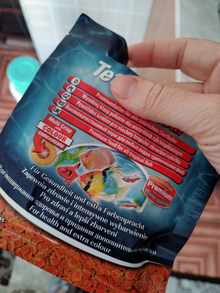 Чипсов достаточно много, хватит не на один месяц, с учетом того, что я чередую корма. Для живородок приходится ломать, достаточно быстро тонет. Когда кидаешь, по воде появляются небольшие разводы, как от жира. Мои рыбешки лопают с удовольствием. Про усиление окраса пока не могу ничего сказать, к сожалению.