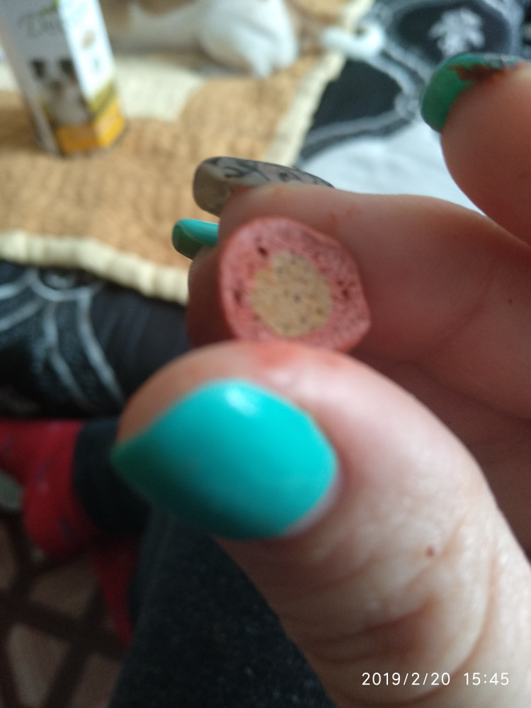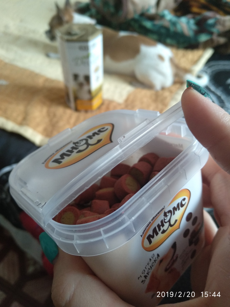 эти лакомства заказываю постоянно. очень удобная упаковка, собаке- тойчику, судя по всему, вкус нравится. использую на прогулках и при дрессировке как поощрение. собачка у меня маленькая, поэтому перед использованием кусочки делю на 4 части.