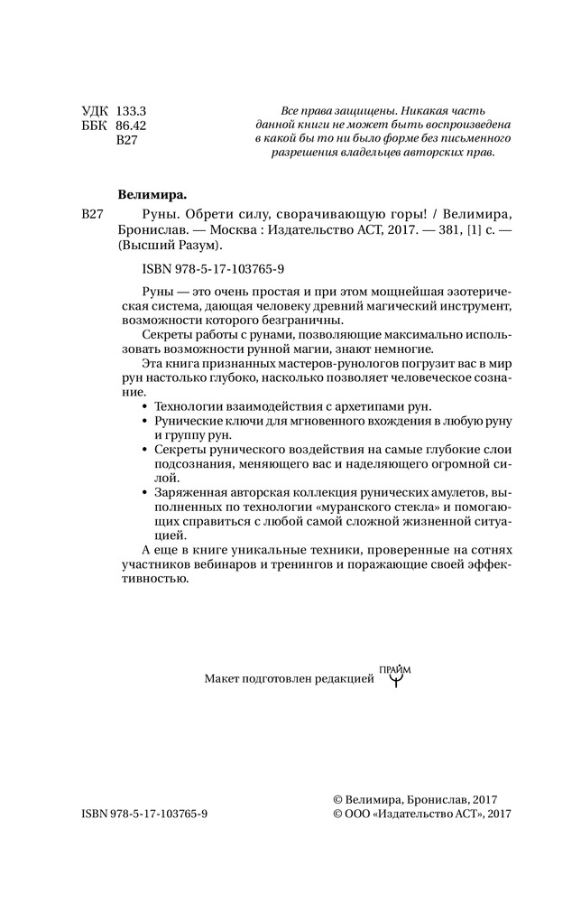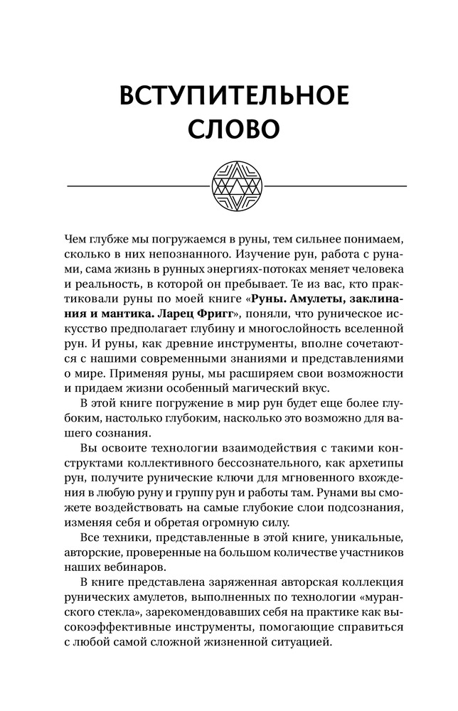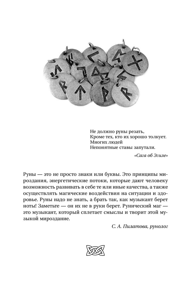 Книгу взяла, ориентируясь на предыдущие отзывы и не пожалела!) Книга хороша, особенно, для начинающих. Расписаны методы, техники работы с рунами. Ёмкое их описание. И даже, наглядно показано, как правильно руны прорисовывать (в каком порядке, в каком направлении). Благодарю!