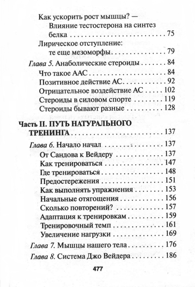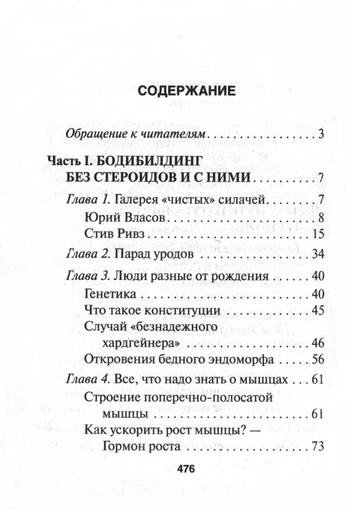 С момента покупки на сегодняшний день прочел 160 стр. Все 160 стр. повествуют о том, почему не стоит употреблять химию. Возможно, дальше начнется хоть какая-то часть по рекомендациям в тренировках.