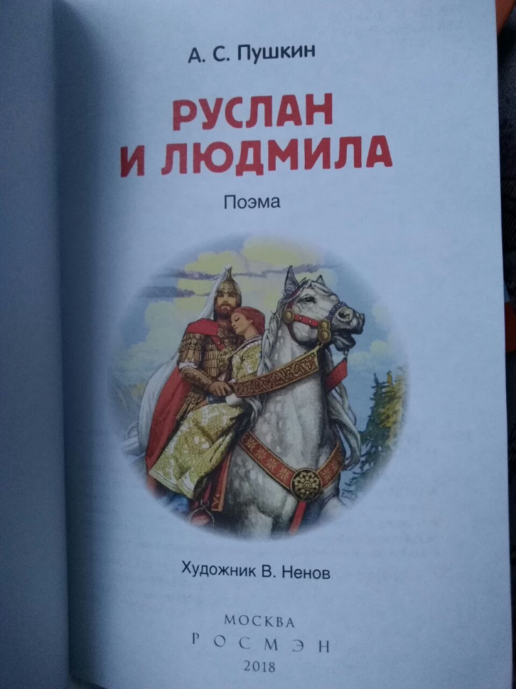 "Руслан и Людмила" - в красивом цветном переплёте, страницы белые, шрифт хороший. Очень красивые большие цветные рисунки В.Ненова. Рисунки не бледные, яркие. Эта книжка - хорошее дополнение к "Сказкам" А.Пушкина из этой же серии (кстати, так же отлично изданной!). Великолепно изданная книжка!!