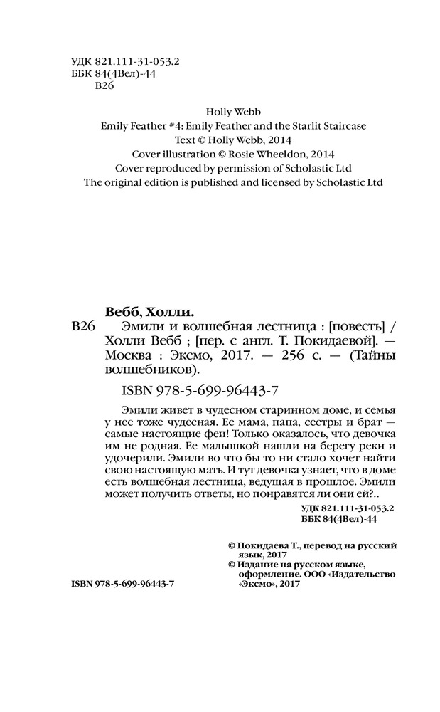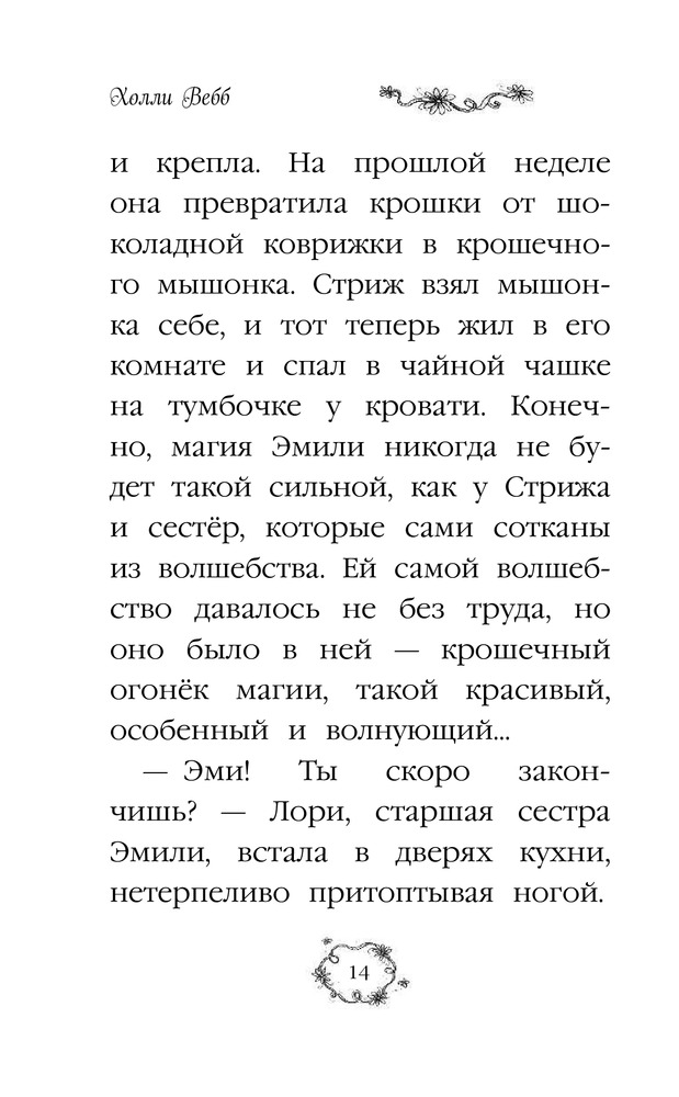 Это вторая серия книг автора Холли Вебб. Дочка полностью прочитала серию книг про приключения Мейзи Хитченс (то еж купленная на Флипе). И как на день рождения ей подарили две книги про приключения Эмили. Сюжет интересный, хочется читать и читать все больше. Качество отличное, крупный шрифт, плотные страницы.
