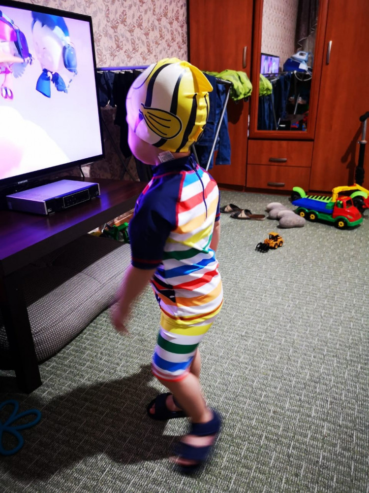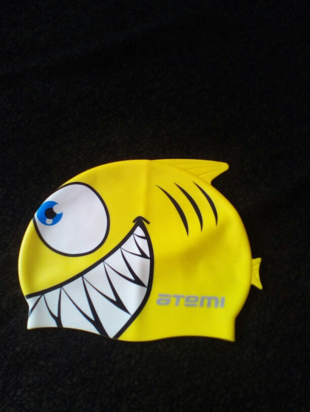 Шапочка очень яркая, необычная. По размеру незнаю может быть. Так и должен сидеть плотно очень, чтоб в уши вода не попадала. Ребенку 2.5 года