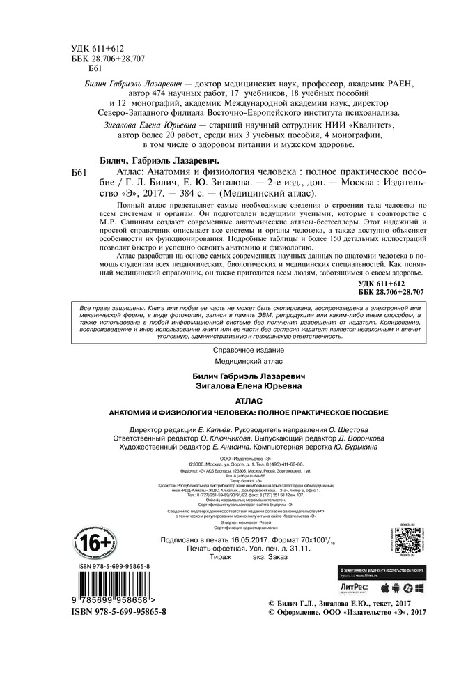 💳 Оплатить за товар можно при получении 🇰🇿 Есть бесплатная доставка по Казахстану от 1 дня 🎁 Копите бонусы с каждой покупки Серия: Медицинский атлас Полный атлас представляет самые необходимые сведения о строении тела человека по всем системам и органам. Он подготовлен ведущими учеными, которые в соавторстве с М. Р. Сапиным создают современные анатомические атласы-бестселлеры. Этот надежный и простой справочник описывает все системы и органы человека, а также доступно объясняет особенности их функционирования. Подробные таблицы и более 150 детальных иллюстраций позволят быстро и успешно освоить анатомию и физиологию. |