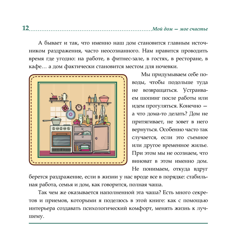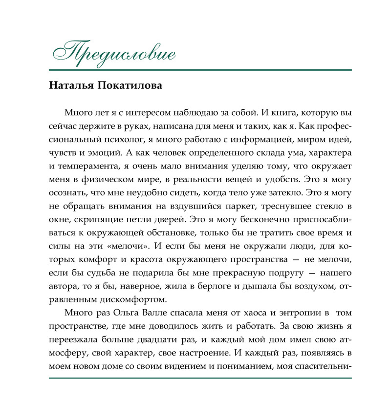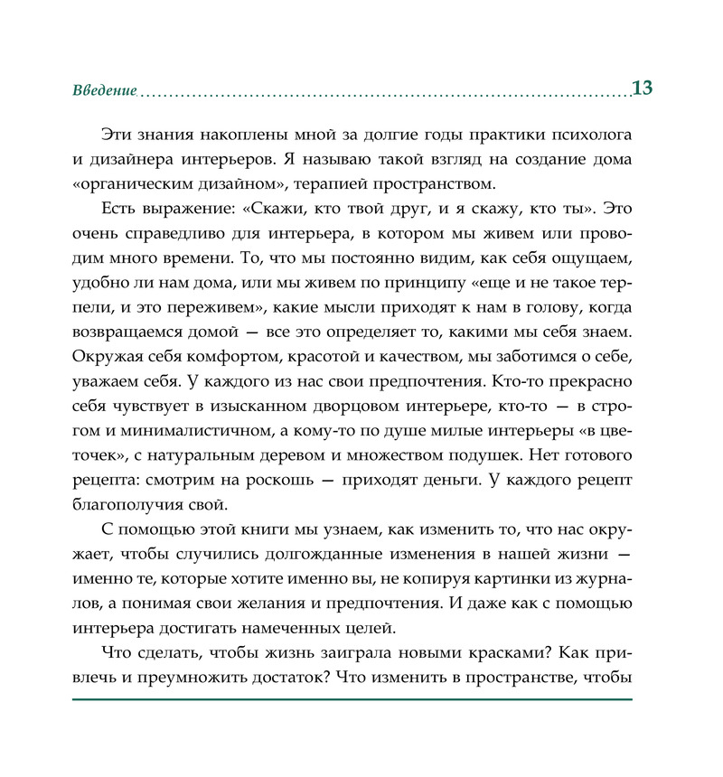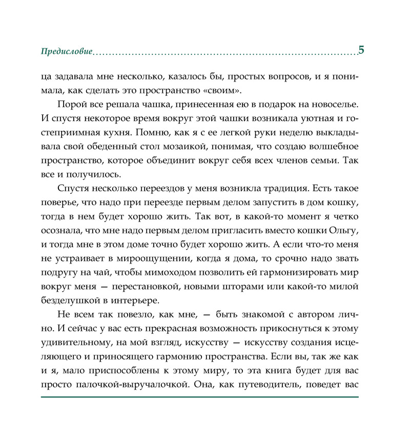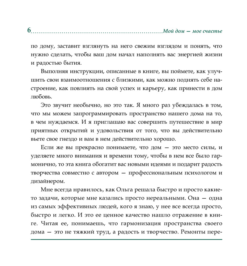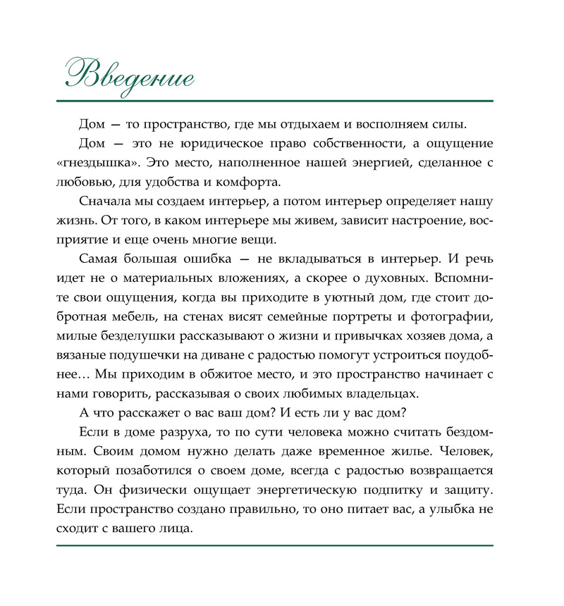 Гармонизация пространства — не тяжкий труд, а радость и творчество. Ремонты перестают пугать, невозможное оказывается возможным, а сложное — простым. Книга не просто заставит задуматься, но и вдохновит вас менять мир вокруг себя под себя!»