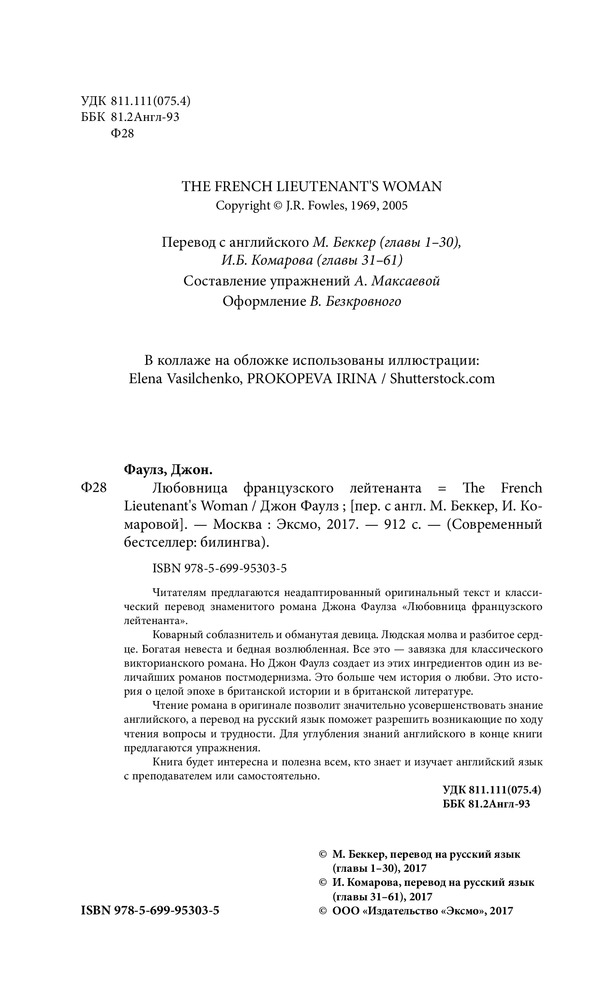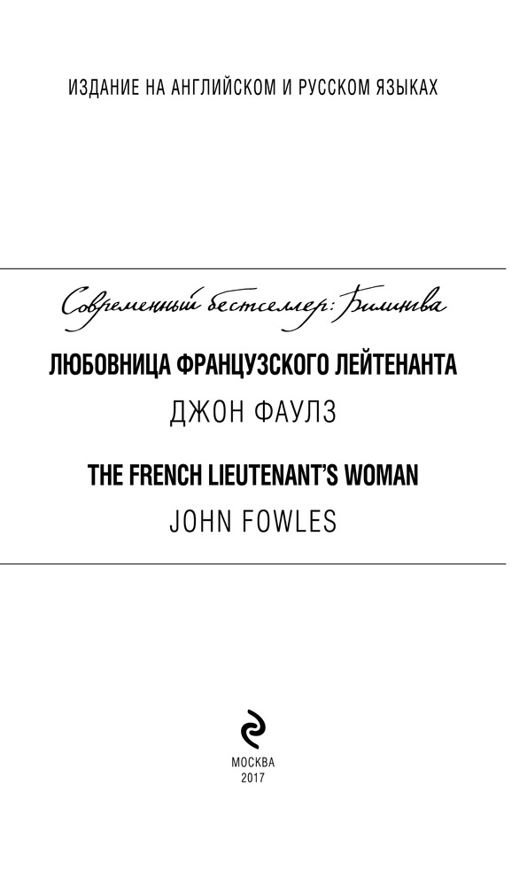 Любовница французского лейтенанта = The French Lieutenant's WomanВ данный момент этот товар отсутствует в продаже. Возможно, у нас найдется аналогичный или похожий товар здесь. Серия: Современный бестселлер. Билингва Читателям предлагаются неадаптированный оригинальный текст и классический перевод знаменитого романа Джона Фаулза «Любовница французского лейтенанта». |
