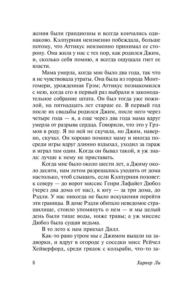 Это действительно лучший американский роман 20 века. (По крайней мере, из тех, что мною прочитаны - наряду с Сэллинджером, Уорреном, Стейнбеком.) Книга отличная, талантливая, умная, трогательная. Принцип донесегия сути до читателя схож с тем, что применен в "Над пропастью во ржи" и "Форесте Гампе": взрослые люди и события глазами маленькой девочки. К прочтению обязательно!