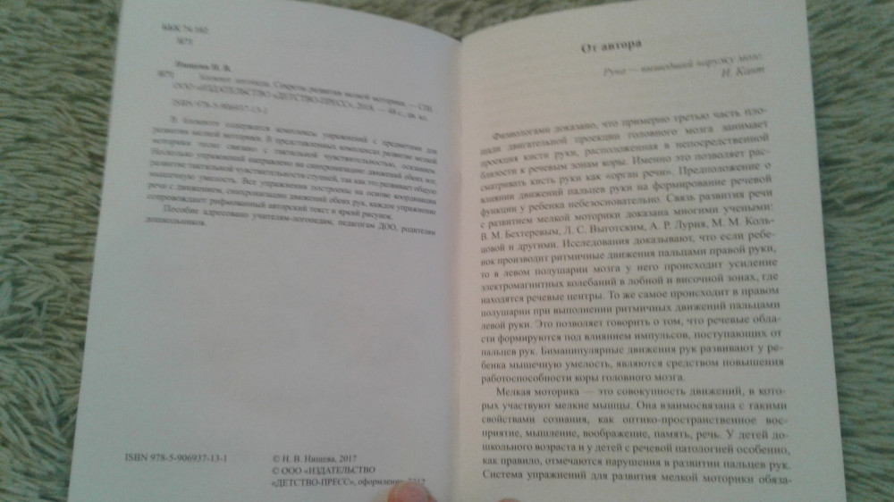 Блокнот логопеда. Секреты развития мелкой моторики с 4 до 7 лет. ФГОСинтересные задания мелкая моторика В данный момент этот товар отсутствует в продаже. Возможно, у нас найдется аналогичный или похожий товар здесь. Серия: Коррекционное и инклюзивное образование в ДОО В блокноте содержатся комплексы упражнений с предметами для развития мелкой моторики. В представленных комплексах развитие мелкой моторики тесно связано с тактильной чувствительностью, осязанием. Несколько упражнений направлено на синхронизацию движений обеих ног, развитие тактильной чувствительности ступней, так как это развивает общую мышечную умелость. Все упражнения построены на основе координации речи с движением, синхронизации движений обеих рук, каждое упражнение сопровождает рифмованный авторский текст и яркий рисунок. |