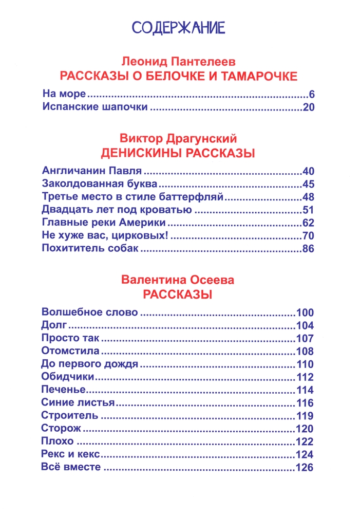 Любимые рассказы для детейЛеонид Пантелеев, Валентина Александровна Осеева, Виктор Юзефович Драгунский яркие иллюстрации удобный шрифт твердый переплет короткие рассказы большой формат В данный момент этот товар отсутствует в продаже. Возможно, у нас найдется аналогичный или похожий товар здесь. Серия: Любимые сказки (Подарочные) В этой книге собраны рассказы известных советских писателей: В. Драгунского, В. Осеевой, Л. Пантелеева. В их произведениях речь пойдёт о важных вещах: дружбе, чести, уважении, которые актуальны и в наше время. Серьёзные, но в то же время полные доброго юмора, рассказы сопровождаются замечательными иллюстрациями! |