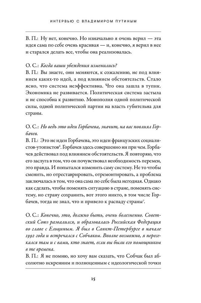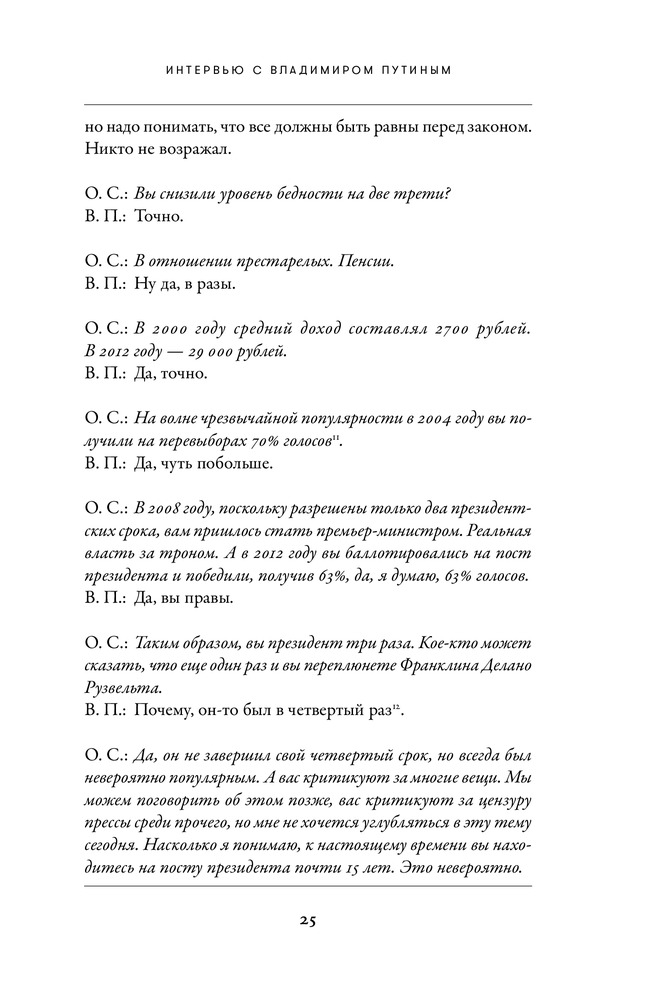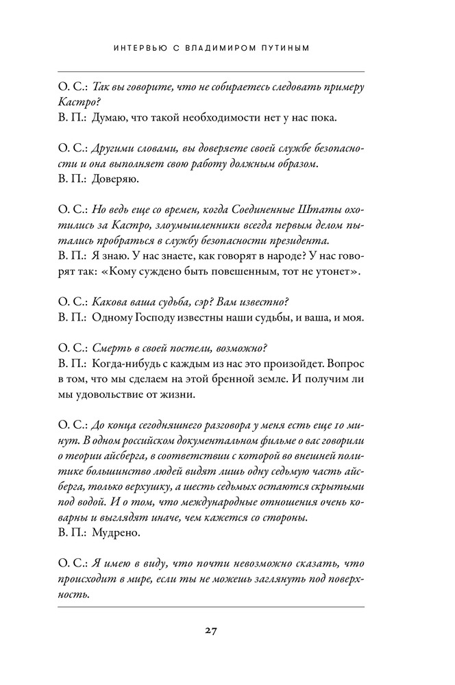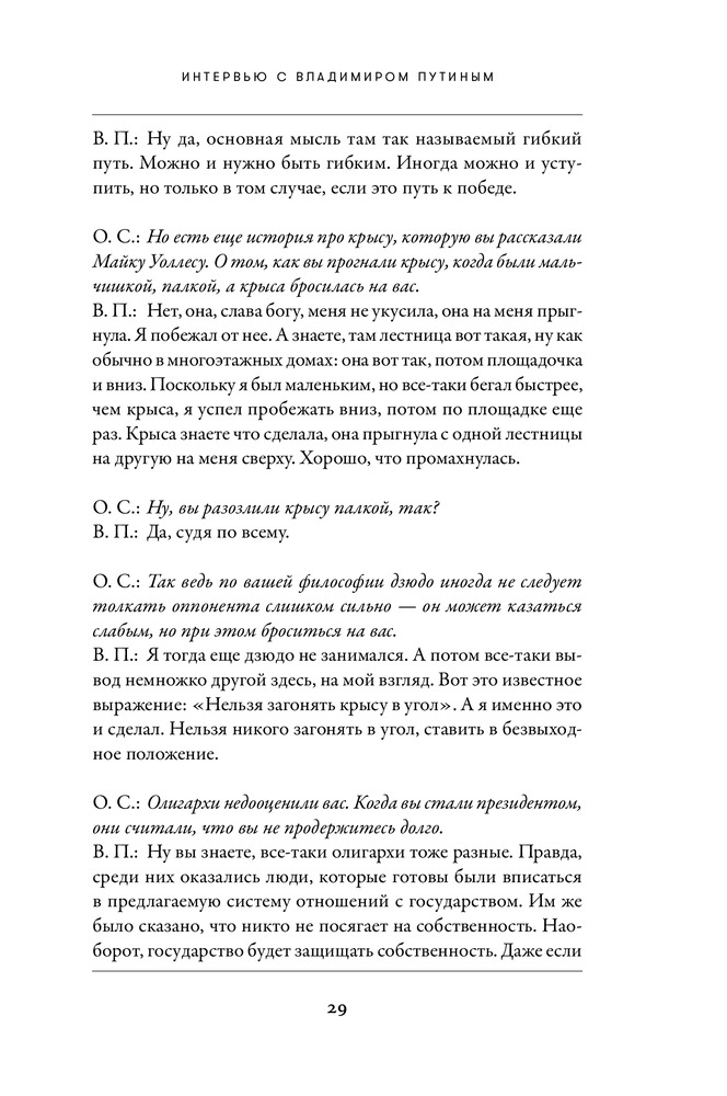 Интервью с Владимиром ПутинымВ данный момент этот товар отсутствует в продаже. Возможно, у нас найдется аналогичный или похожий товар здесь. Владимира Путина считают самым влиятельным человеком в мире. Ему приписывают несметные богатства и царские амбиции. Многие верят, что он лично руководил хакерскими атаками, повлиявшими на выборы в США, и именно он ответственен за начало новой холодной войны с Западом и войну на Украине. Западные политики называют его агрессором и душителем свободы. Но они же признают, что без России невозможно решить ни одну серьезную проблему. Граждане многих стран, в том числе — Запада, восхищаются его прямолинейностью, решительностью и защитой традиционных ценностей, а российские оппозиционеры рассказывают о запредельном уровне коррупции в стране. |
