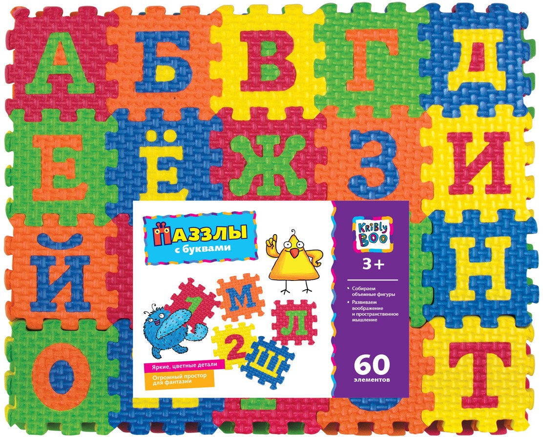 Kribly Boo Пазлы с буквами (60 элементов)В данный момент этот товар отсутствует в продаже. Возможно, у нас найдется аналогичный или похожий товар здесь. Серия: Мягкие пазлы с буквами цифрами и фигурами Детские коврики-пазлы — уникальное изобретение! Они являются сочетанием развивающей игрушки и мягкого напольного покрытия для детских комнат. С одной стороны, коврики-пазлы Kribly Boo — это прекрасное напольное покрытие для игровой зоны, по которому можно прыгать, бегать и ползать, не боясь ушибов, травм и холода, которое легко собирается, разбирается и переносится в любое место в доме или квартире. С другой стороны, — это множество интересных, развивающих игр. Ведь из них можно строить, собирать их как конструктор, изучать по ним цифры, буквы и геометрические фигуры! |