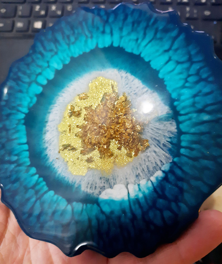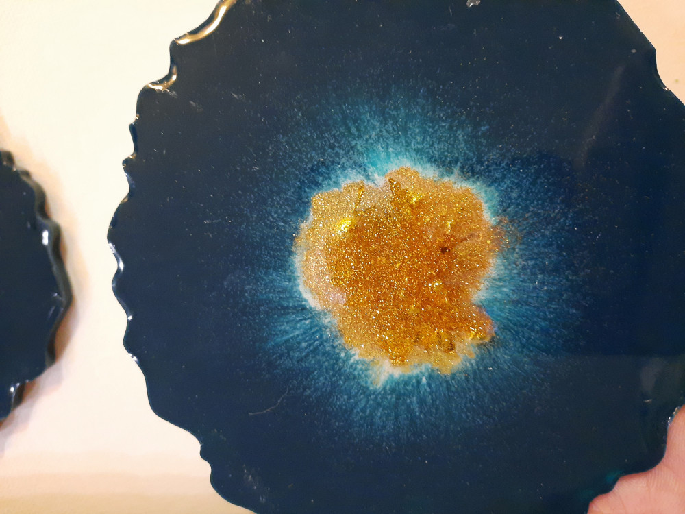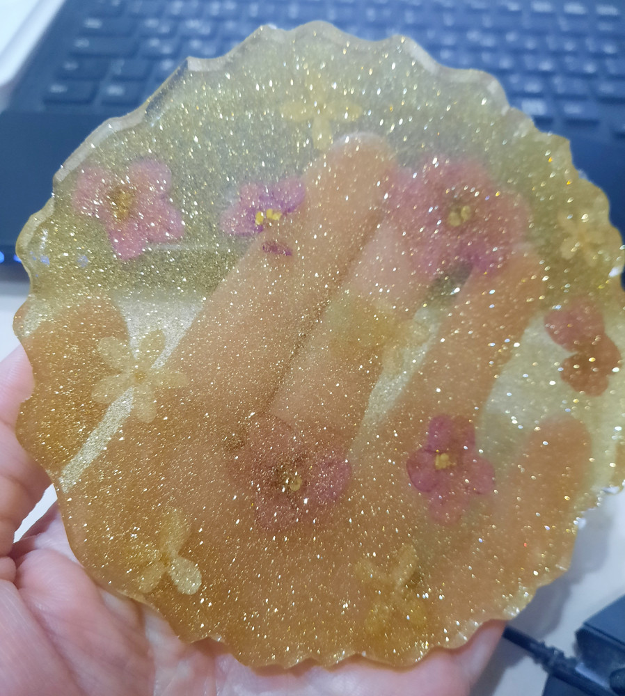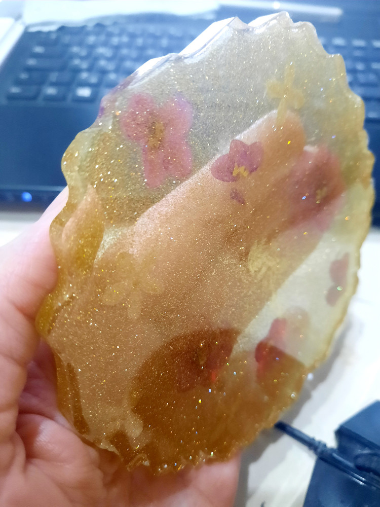 Блёстки использовала для эпоксидной смолы. Нужно сыпать поменьше, я немного переборщила. А так очень понравились, лёгкие и красиво поблёскивают.