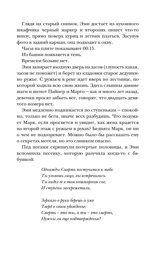 Эта книга сводила меня с ума 4 часа! Ровно столько я ее читала Не в силах оторваться. Это тот случай, когда ты уверена, что разгадала все замыслы автора, и тут...как? Книга для тех, кто любит загадки и мистику.