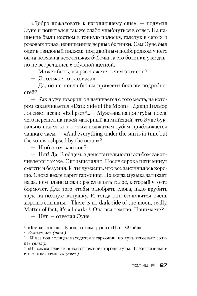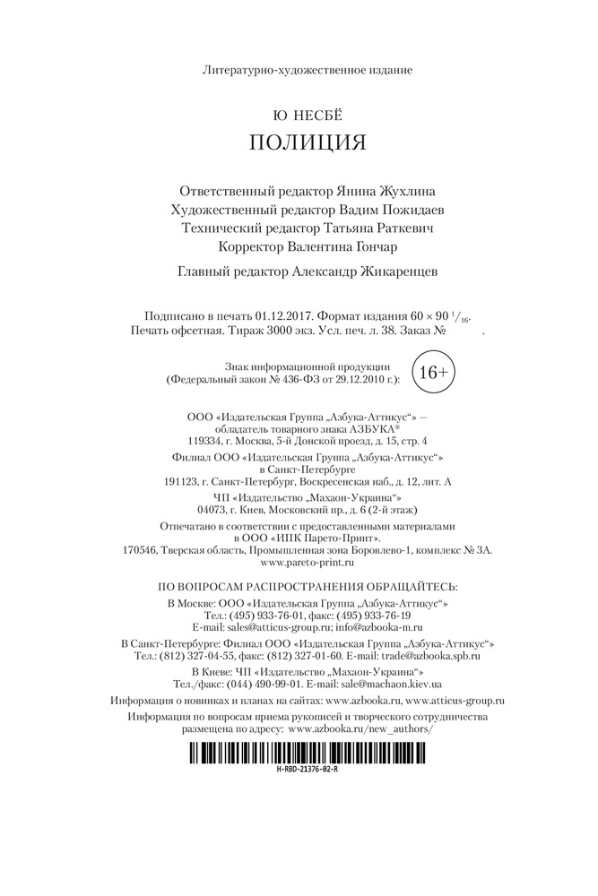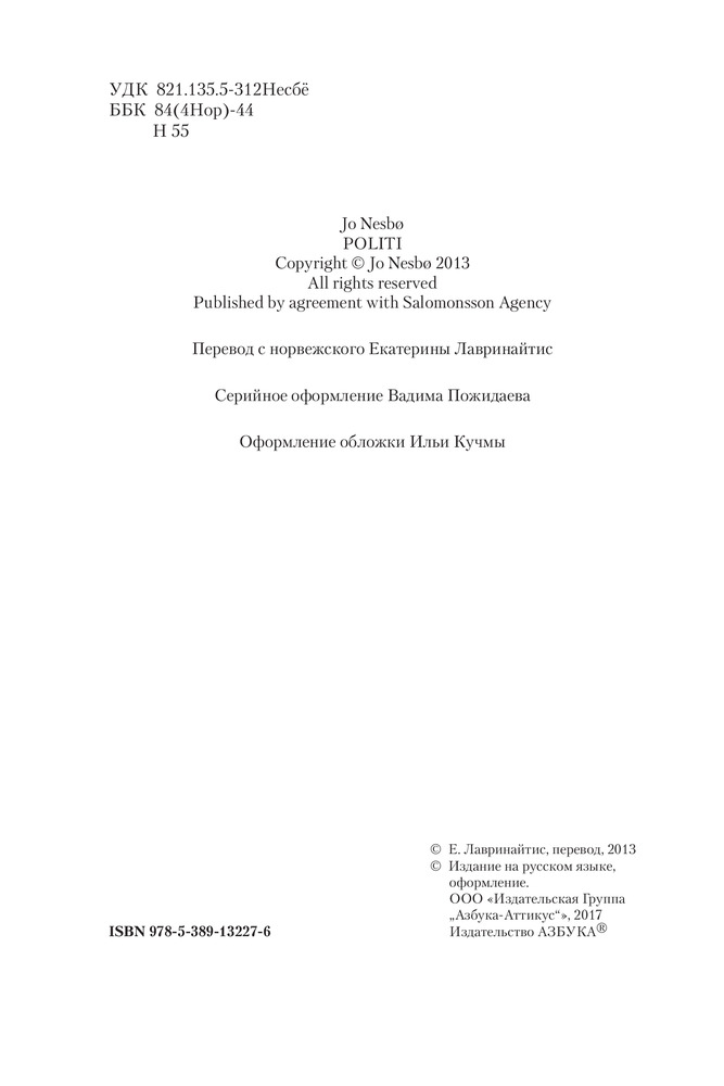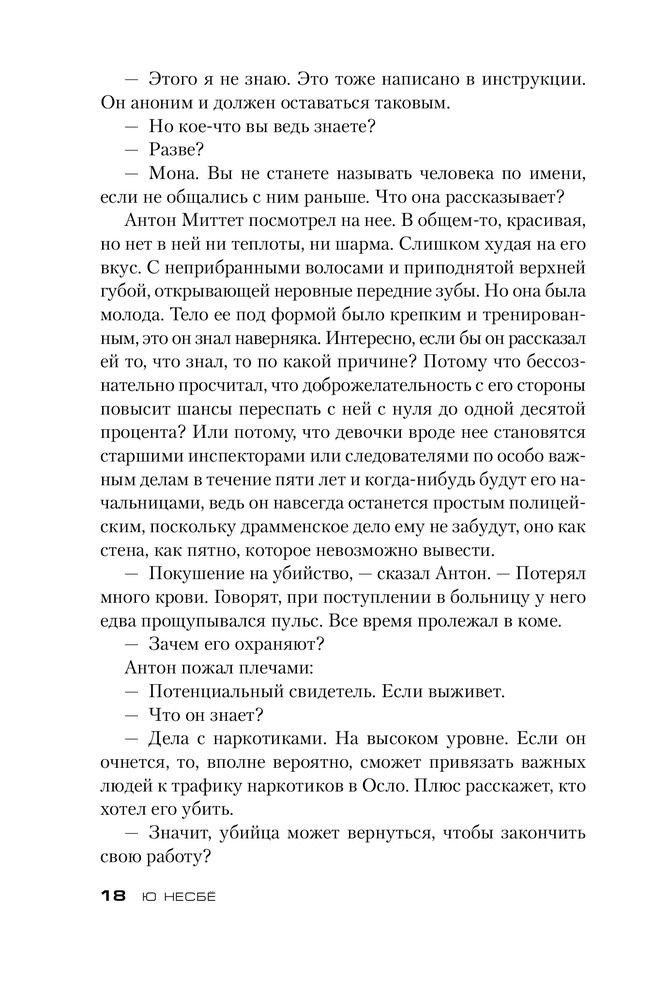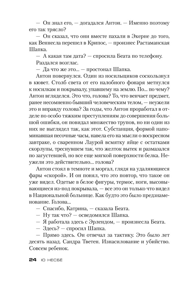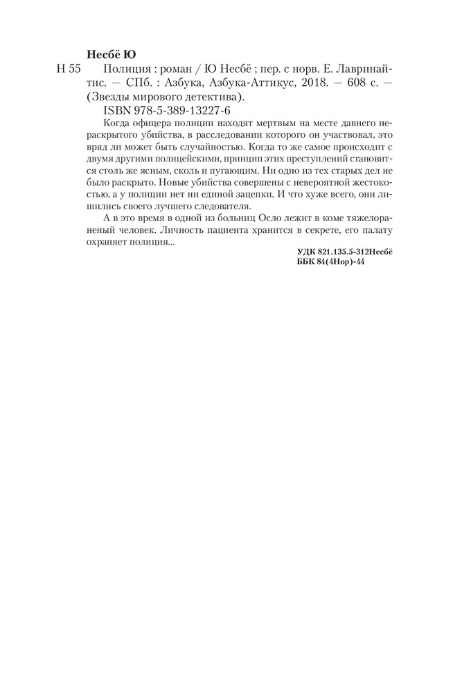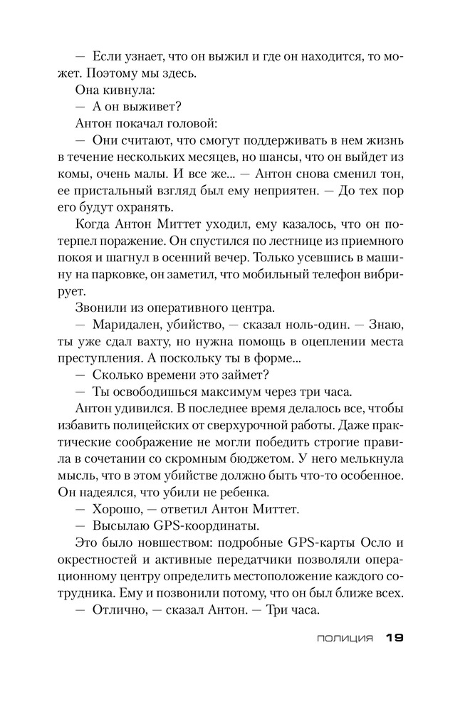 В данный момент этот товар отсутствует в продаже. Возможно, у нас найдется аналогичный или похожий товар здесь. Серия: Звезды мирового детектива (обложка) Когда офицера полиции находят мертвым на месте давнего нераскрытого убийства, в расследовании которого он участвовал, это вряд ли может быть случайностью. Когда то же самое происходит с двумя его коллегами, принцип этих преступлений становится столь же ясным, сколь и пугающим. Ни одно из тех старых дел не было раскрыто. Новые убийства совершены с невероятной жестокостью, а у полицейских нет ни единой зацепки. И что хуже всего, они лишились своего лучшего следователя. А в это время в одной из больниц Осло лежит в коме тяжелораненый человек. Личность пациента хранится в секрете, его палату охраняет полиция... |