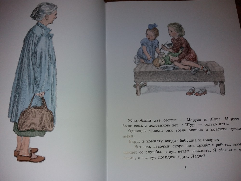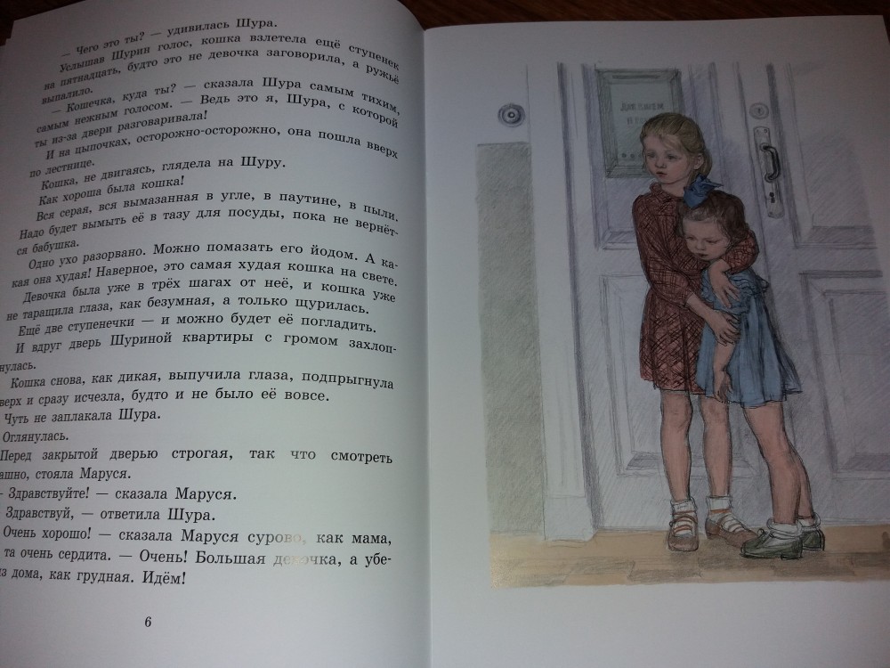 Приключения Шуры и МарусиВ данный момент этот товар отсутствует в продаже. Возможно, у нас найдется аналогичный или похожий товар здесь. В один из осенних дней две сестры, семилетняя Шура и пятилетняя Маруся, занимались самым, что ни на есть девчачьим делом — раскрашивали кукле щёки. Бабушке срочно понадобилось уйти в магазин, и девочки остались одни. Серьезная и строгая Шура продолжала рисовать, а непоседа Маруся услышала за дверью мяуканье и выскочила на лестничную площадку. Дальше события развивались стремительно: кошка побежала наверх, Маруся за ней, Шура вышла, чтобы призвать младшую сестру к порядку, а дверь захлопнулась. Тут, к ужасу девочек, появился страшный пёс Ам, и сёстрам пришлось спасаться сначала в подвале, где находилась котельная, а потом на чердаке. |